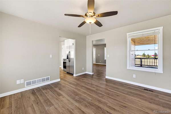 Downstairs, the large unfinished basement offers tremendous opportunity for additional living space, a home gym, theater room, or guest suite—allowing future owners to customize the home to their needs. Outdoor living shines with a welcoming wraparound front porch and expansive back deck, ideal for relaxing and enjoying peaceful Colorado sunsets and wide-open views.