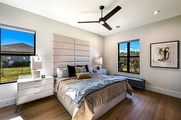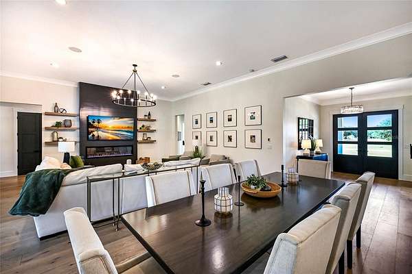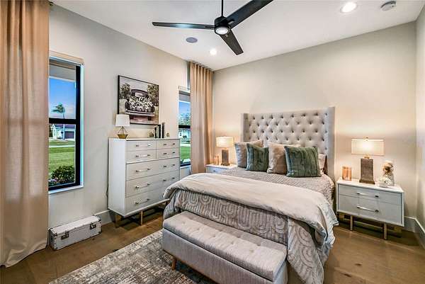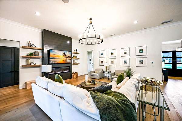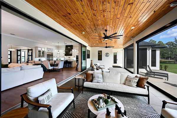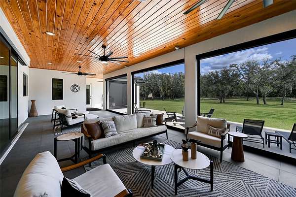 Welcome to Magnolia Oaks, a newly built modern farmhouse estate set on more than 1.7 acres of fully fenced, picturesque grounds in the heart of Lakewood Ranch. Framed by majestic oak trees and expansive open skies, this exceptional property offers a rare blend of space, privacy, and refined craftsmanship--an inspired blank canvas for elevated living. Spanning over 3,900 square feet, the thoughtfully designed residence features four bedrooms, four full baths, a private office, and a versatile bonus room, all wrapped in timeless farmhouse elegance. Soaring 12-foot ceilings grace the main living areas, enhancing the expansive open-concept floor plan with an abundance of natural light and an inviting atmosphere ideal for both everyday living and entertaining. At the heart of the home, the chef's kitchen is a true showpiece--equipped with a professional-grade cooktop, dual ovens, oversized refrigerator, elegant walk-in pantry, and a stunning oversized island with sink, perfectly designed for gatherings, conversation, and culinary creativity. Designed for both beauty and peace of mind, the home is outfitted with impact-rated windows and sliding glass doors throughout, and is further enhanced by a whole-house generator, providing year-round security, comfort, and uninterrupted living. Indoor-outdoor living takes center stage with four inviting porches, including an extraordinary 1,000+ square-foot covered back lanai featuring a custom roll-up screening system for year-round enjoyment. Additional private porches extend from the primary suite and in-law suite, while the oversized front porch offers the perfect setting for sunset views and peaceful moments beneath the oaks. Each bedroom is designed as a private retreat, with three en-suite bedrooms providing exceptional comfort and privacy for family and guests. The flexible bonus room--currently utilized as a gym--can easily transition into an additional bedroom, nursery, office, or dream closet. A private in-law suite with its own porch offers independence and comfort, ideal for extended family or visitors. Completing the residence is an oversized 939-square-foot three-car garage, providing ample space for vehicles, storage, and hobbies. Outdoors, Magnolia Oaks truly comes alive. The beautifully landscaped grounds provide endless opportunities to roam, entertain, or simply relax in the shade of mature oak trees. The property also allows for the addition of a casita or guest house, creating exciting possibilities for future expansion. More than just a home, Magnolia Oaks is a lifestyle--a serene, private oasis where you can stretch out, breathe deeply, and create something truly special. This is modern farmhouse living at its finest.