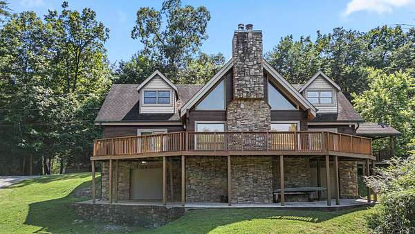 Seller is offering $5,000 toward buyer's concessions! Welcome to your private retreat nestled on 5.5 beautifully wooded acres in desirable Harrison, TN. This well-maintained 3-bedroom, 2.5-bath custom log home offers the perfect blend of rustic charm and modern convenience-just minutes from shopping, dining, Island Cove Marina, Harrison Bay State Park and Bear Trace Golf Course! Inside, you'll find 2,554 square feet of inviting living space featuring maple wood flooring, exposed Douglas Fir beams, soaring 25-foot ceilings, and abundant natural light. The open floor plan centers around a cozy living room fireplace, ideal for both everyday living and entertaining. The spacious loft area provides flexible space for a home office, media room, or additional sleeping quarters. The main-level primary suite includes direct access to the expansive back deck-perfect for enjoying peaceful mornings or evening sunsets. With two covered porches, this home offers multiple outdoor spaces to take in the serene surroundings. An additional 1,656 sq. ft of unfinished basement space provides incredible potential for future expansion-whether you're dreaming of a home gym, workshop, or guest suite. Additional features include: AT&T Fiber Optic internet installed, HAM/Amateur radio site with 60-foot tower (removable at buyer's request), plus additional acreage available if desired! Whether you're looking for a full-time residence or a weekend getaway, this log home checks all the boxes for privacy, space, and charm. Don't miss this rare opportunity! Schedule you private showing today!