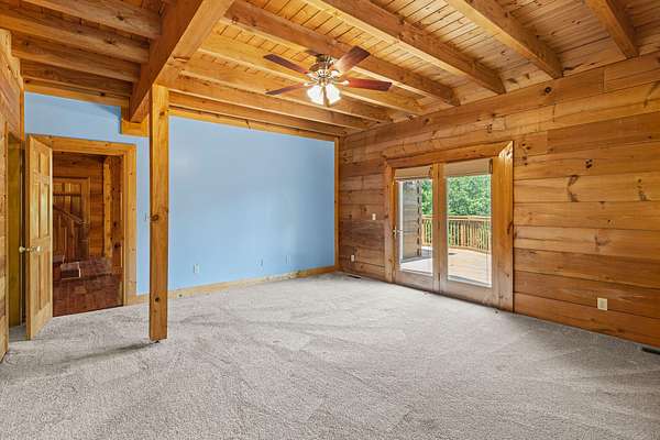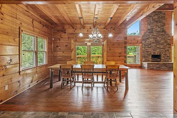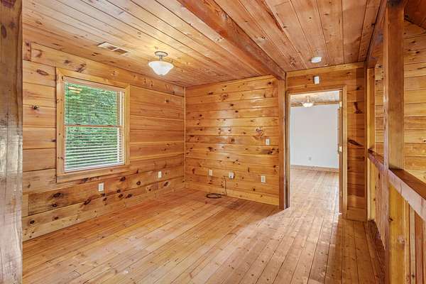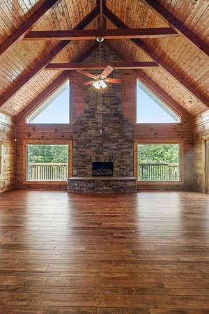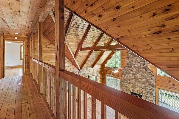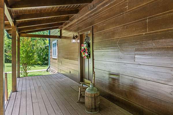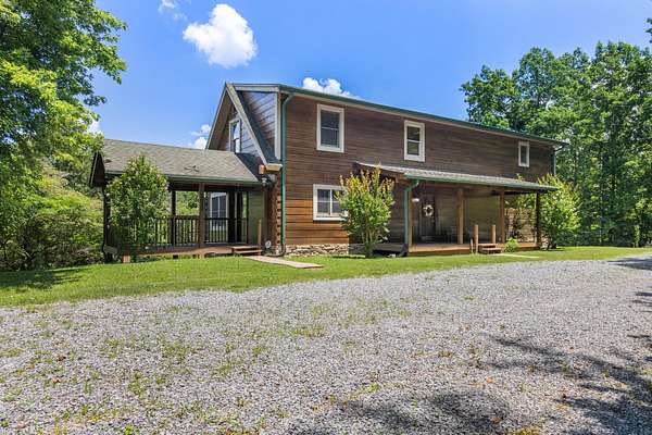 Welcome to your private retreat set on 13.5 beautifully wooded acres in the desirable Harrison, TN area. This well-maintained custom log home blends timeless rustic character with modern conveniences, all just minutes from shopping, dining, Island Cove Marina, Harrison Bay State Park, The Ooltewah Club and Bear Trace Golf Course. Offering 3 bedrooms, 2.5 baths, and 2,554 square feet of inviting living space, the home features maple wood flooring, exposed Douglas Fir beams, soaring 25-foot ceilings, and an abundance of natural light. The open-concept layout is anchored by a cozy living room fireplace, creating an ideal space for both everyday living and entertaining. The spacious loft provides flexible options for a home office, media room, or additional sleeping area. The main-level primary suite offers direct access to the expansive back deck-perfect for peaceful mornings surrounded by nature or relaxing evening sunsets. Two covered porches further enhance the home's outdoor living spaces, allowing you to fully enjoy the serene wooded setting. An additional 1,656 square feet of unfinished basement space offers exceptional potential for future expansion, whether you envision a home gym, workshop, guest suite, or recreation area. Whether you're searching for a full-time residence or a weekend escape, this unique log home delivers privacy, space, and character in a prime location. Schedule your private showing today and experience this rare opportunity firsthand.