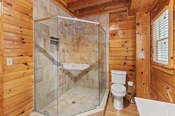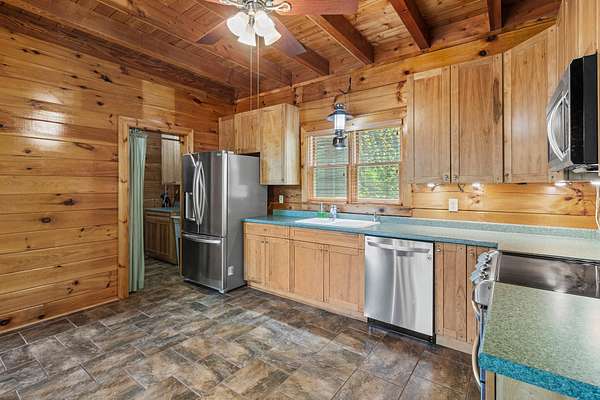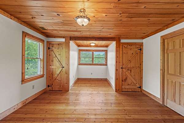 - Beamed Ceilings, Cathedral Ceiling(s), Eat-In Kitchen, High Speed Internet, Laminate Counters, Natural Woodwork, Open Floorplan, Primary Downstairs, Separate Dining Room, Separate Shower, Smart Thermostat, Soaking Tub, Vaulted Ceiling(s), Walk-In Closet(s)