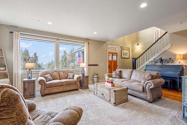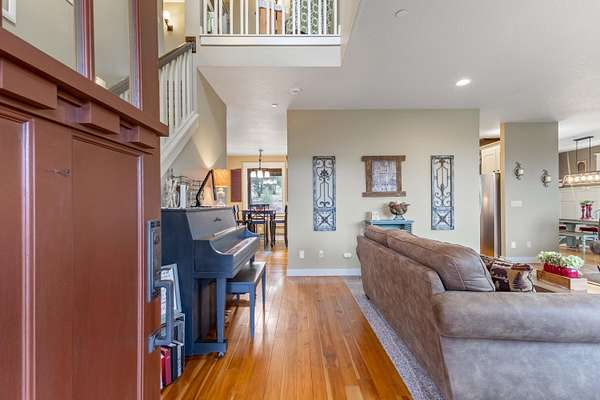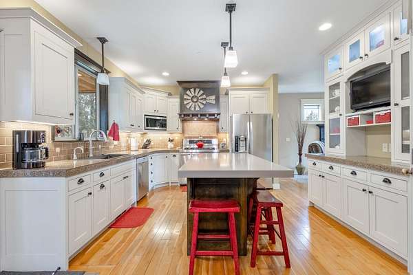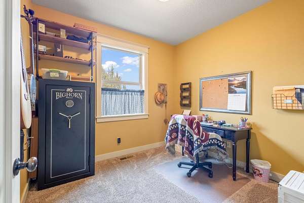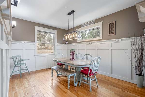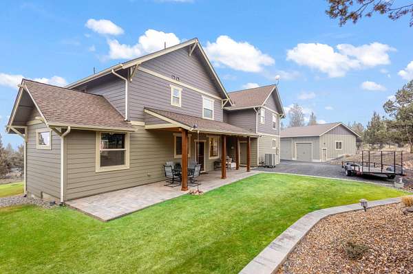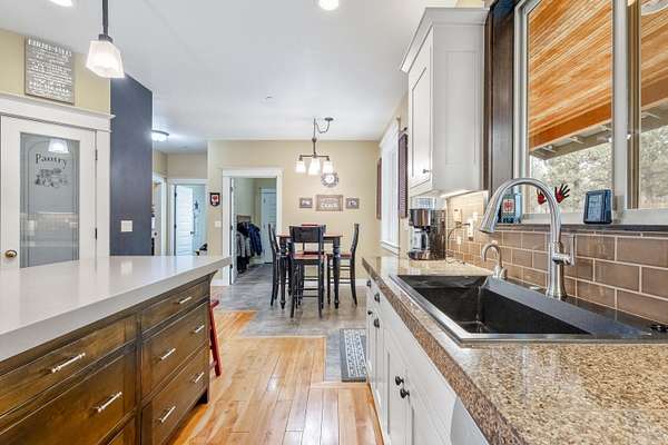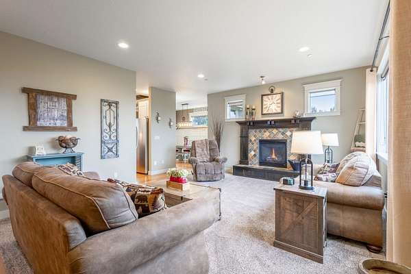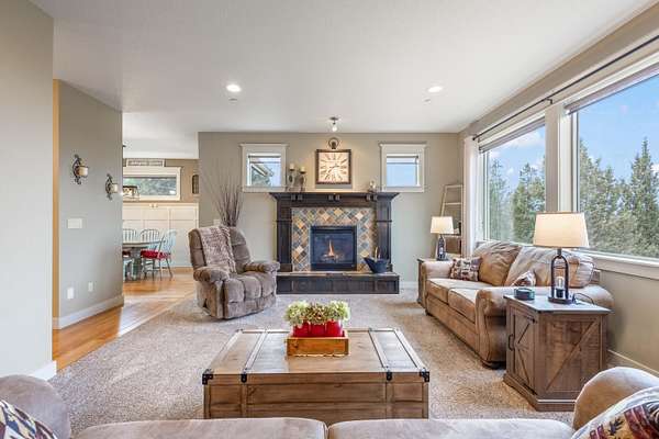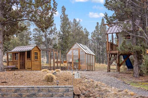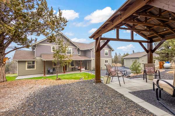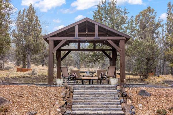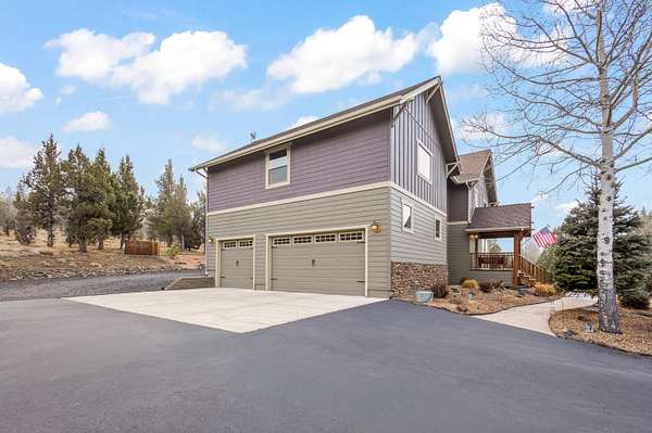 Stunning Craftsman home in gated Mountain Ridge Estates offering 2,956 sq ft with 4 bedrooms, 3 baths, office, and bonus room. Custom kitchen features quartz & granite counters, dual-fuel range, large island, and pantry, opening to formal dining and a warm living space with gas fireplace. The primary suite enjoys Cascade Mountain views and a spa-like bath with soaking tub. High-end details throughout include solid wood doors, custom moulding, 50-year roof, instant hot water, fire-suppression system, and sauna.Outdoor living shines with covered front and back porches, patio with gazebo, underground sprinklers, and a treehouse. Oversized 3-car garage plus a 2-bay shop with 12' RV door. Community access to BLM land completes this exceptional property.
