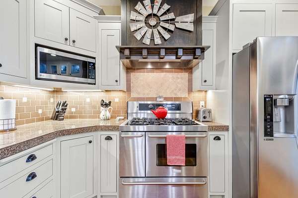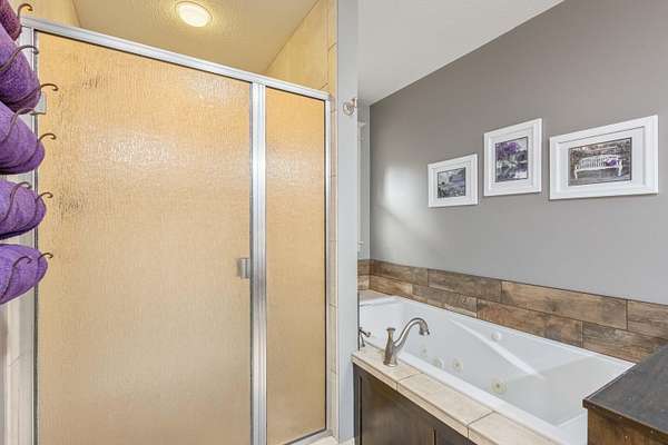 - Built-In Features, Ceiling Fan(s), Central Vacuum, Enclosed Toilet(s), Kitchen Island, Linen Closet, Pantry, Shower/Tub Combo, Soaking Tub, Solid Surface Counters, Stone Counters, Tile Shower, Vaulted Ceiling(s), Walk-In Closet(s)