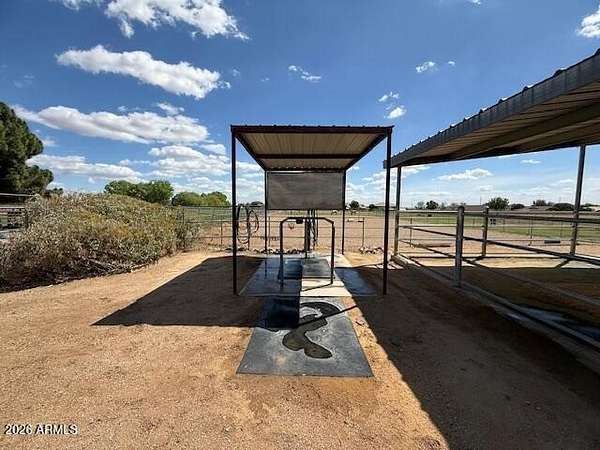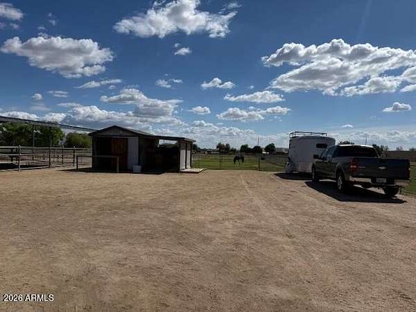Welcome to Waddell's Horse Ranch. This house is approximately 1800 sq.ft. with 4 bedrooms 2 baths tile floors, large windows for natural lighting, back doors to yard with large security doors. New SS appliances, Laminate countertops, Kitchen island, high beam ceilings with new ceiling fans, doggy door for your furry family members and a nice big pool with plenty of room to entertain. Large concrete patio and deck. Then in the back of property sits a 6 stall horse barn with tack room, hay barn and wash rack. 2 large pastures for your horses to enjoy could be made 4 pastures, and a big fenced in arena for riding. Truly a must see, so much potential.