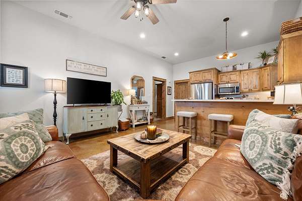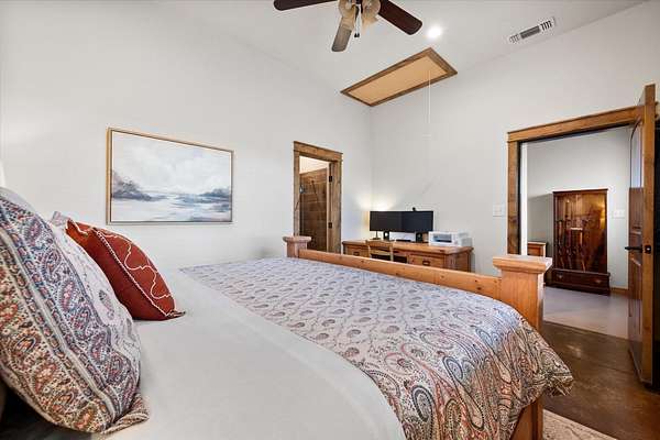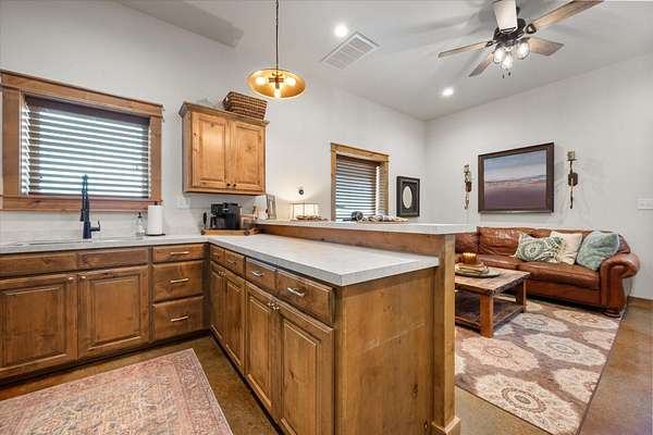 Well-maintained 1,300 sq. ft. barndominium on 20 acres in the sought-after New Home School District. Home features open views, a covered patio with sunset views, and newer construction designed for comfort and efficiency. Attached 2,000 sq. ft. barn includes two horse stalls, large overhang for covered parking or equipment, and ample storage. Property is fully fenced and cross-fenced into two 10-acre tracts. Livestock pens with water access, insulated well house with sand filter, and a tree-lined driveway with sprinkler system complete this turnkey setup. Ideal for livestock, recreation, or peaceful country living, all just minutes from New Home.