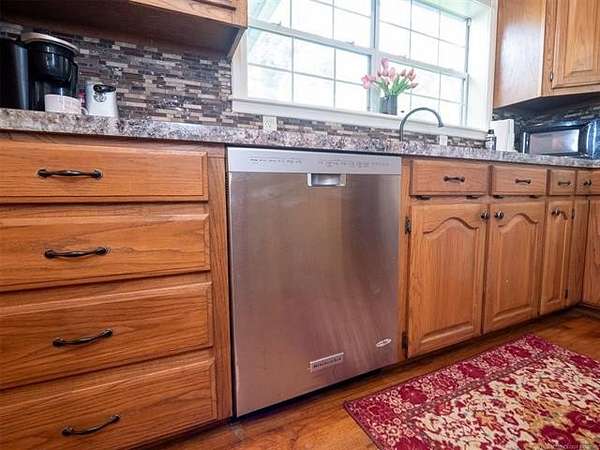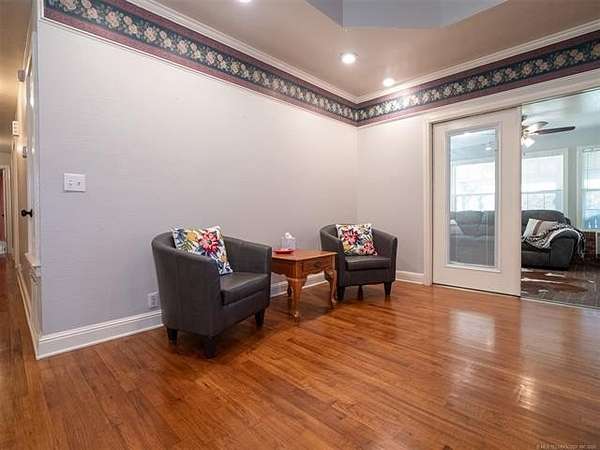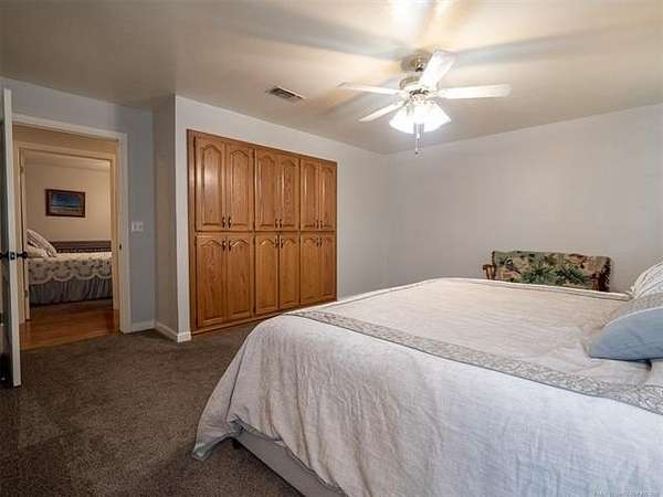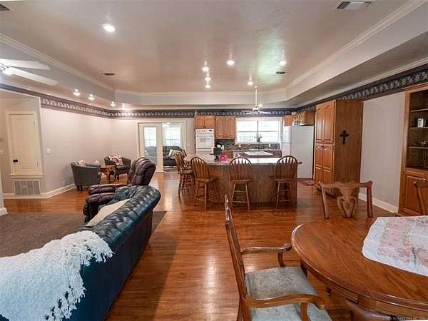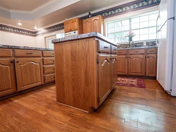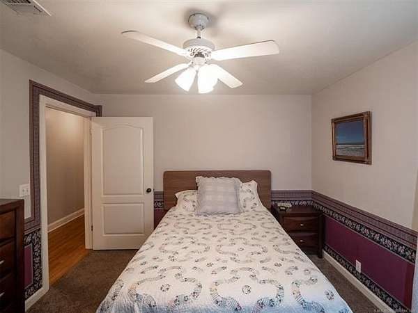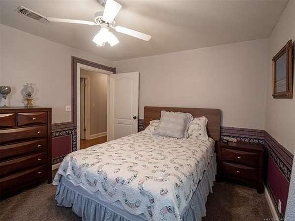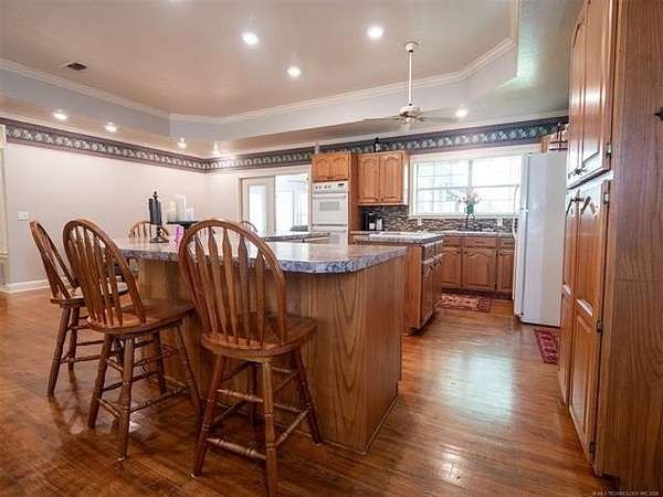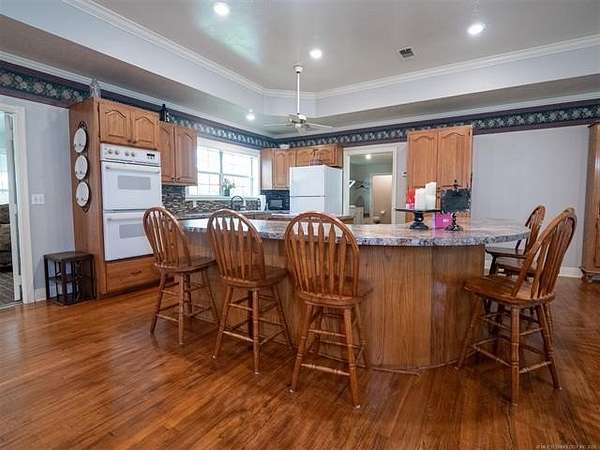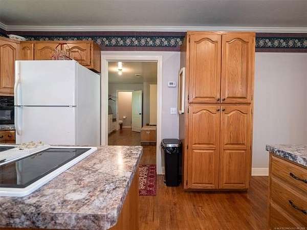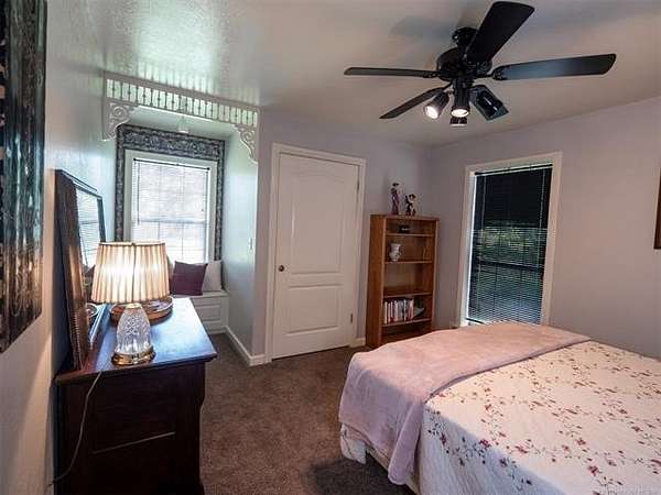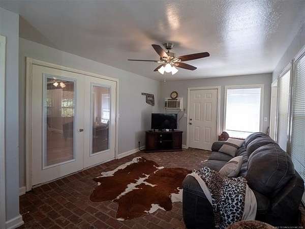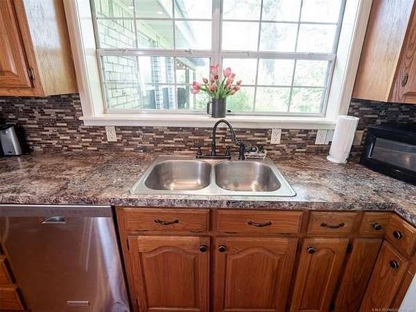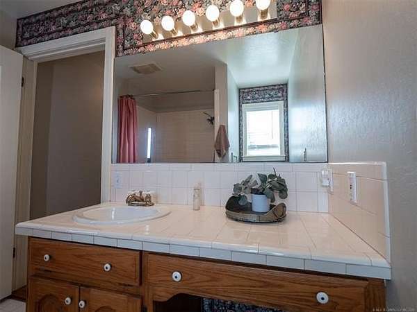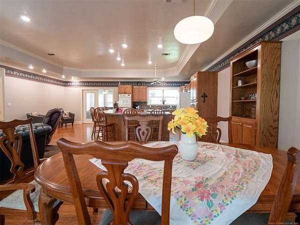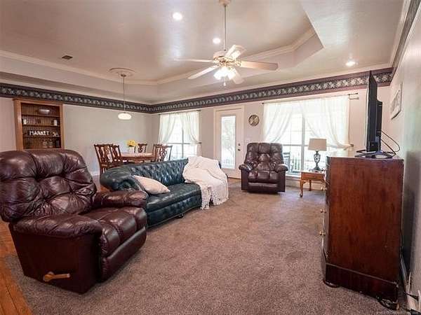 This stunning custom-built home features 3 bedrooms and 2.5 baths, set in a peaceful country setting that offers both comfort and tranquility. The open-concept kitchen and living area include oak cabinets with pull-out shelves, providing ample storage and functionality. The spacious layout is ideal for entertaining family and friends. Fresh interior paint in 2023 gives the home a bright, updated feel throughout. The master suite is designed for relaxation, featuring a jacuzzi tub, a large walk-in closet, and built-in storage drawers. Each additional bedroom also includes a walk-in closet, with one offering a cozy reading nook-perfect for quiet moments. A sunroom off the back of the house provides a serene space to enjoy natural light and views of the property. Just outside the back door, a safe room offers added peace of mind. Extending from the back of the home is a 20' x 21' covered patio-an inviting outdoor space perfect for gatherings, dining, or simply relaxing while taking in those beautiful Oklahoma sunsets. The home is equipped with two heat pumps (installed around 2017) and a termite treatment system for year-round comfort and protection. Outdoor features include two ponds, a carport with a work area, a 16x32 insulated and heated shed, a barn, and a hay barn. The property is serviced by both rural water and a well, with fiber optic internet ready for hookup. A perfect blend of modern comfort and country living-ready to welcome its next owner home.
