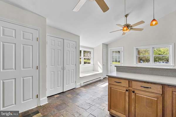 - Attic, Breakfast Area, Built-Ins, Carpet, Ceiling Fan(s), Chair Railings, Combination Kitchen/Dining, Crown Moldings, Dining Area, Eat-In Kitchen, Entry Level Bedroom, Table Space Kitchen, Wood Stove