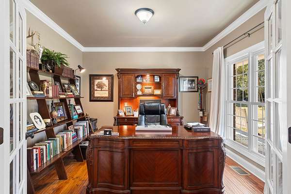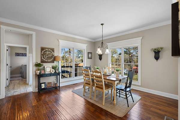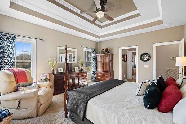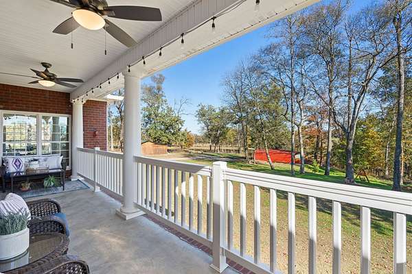 With no HOA and county zoning, the property offers flexibility for a variety of uses. Outdoor features include open views, mature trees, a newly constructed pond, covered front and back porches, and multiple areas suitable for relaxation. Wildlife is frequently observed on the grounds. Tate Lane also provides a shaded walking route in either direction from the driveway.