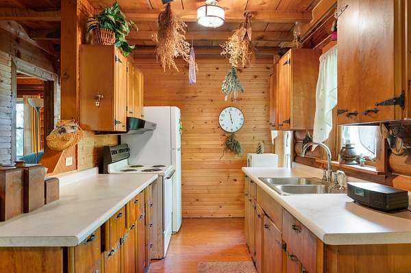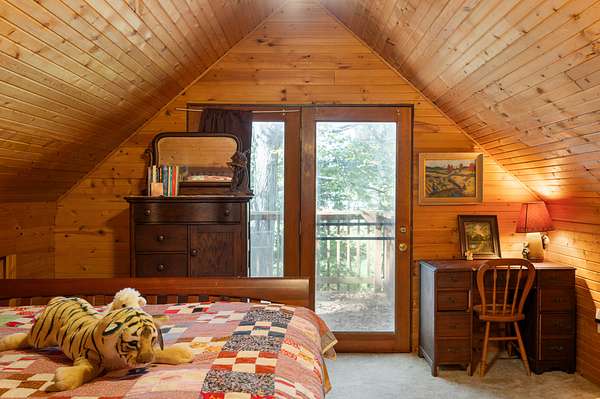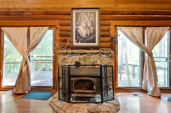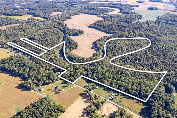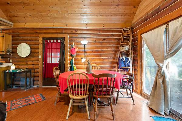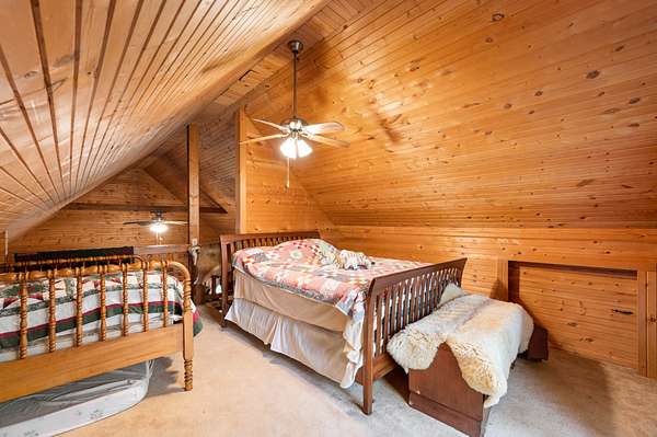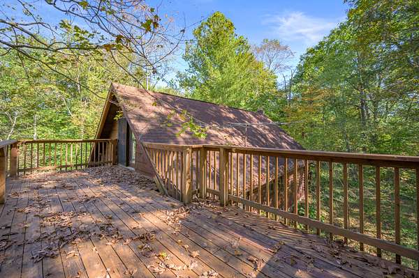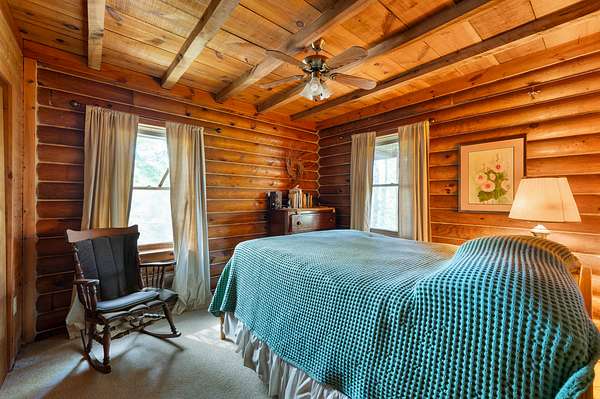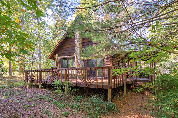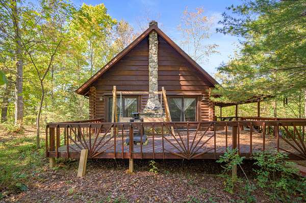 Tucked away on nearly 75 acres of pristine, wooded paradise, this charming log home offers the ultimate in peace, privacy, and natural beauty--perfect for a weekend getaway, vacation rental, hunting ground with lodging, or full-time living. Located just 1.25 hours from Indianapolis, Louisville, and Cincinnati, and just 50 minutes from Brown County State Park, this hidden gem is the quick escape you've been dreaming of. Step inside to a soaring cathedral ceiling and a wood-burning fireplace that anchors the open-concept living area. The main level features a cozy living room, kitchen, dining area, one bedroom, and a full bath. Upstairs, a second bedroom, with private upper deck access, offers a tranquil space for guests or a peaceful retreat for morning coffee and stargazing at night. Outside, the beauty continues with a covered front porch, main-level deck, and stunning natural views in every direction. The property borders approximately 1.5 miles of Sand Creek, offering endless recreation opportunities--from fishing/hunting, to peaceful nature exploration, to rafting for nearly an hour without even leaving your property. A picturesque waterfall area, once used to power an old mill, adds even more charm and character to the landscape. Additional features include: geothermal HVAC for energy-efficient comfort, city utilities, storage shed, and the potential for income as a vacation rental or hunting lodge. Don't miss your chance to own this rare, one-of-a-kind retreat where serenity, seclusion, and natural beauty come together!