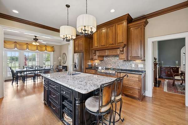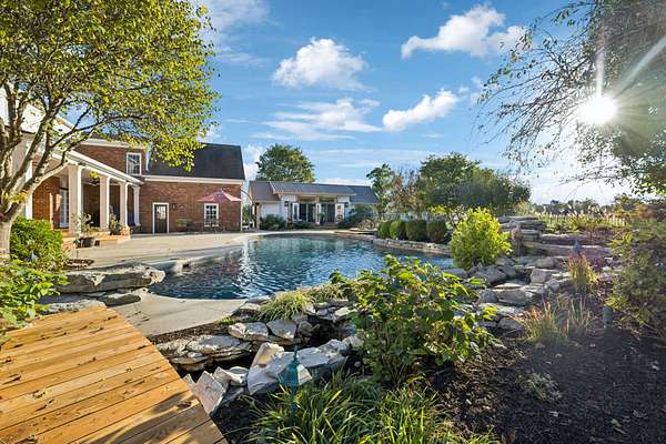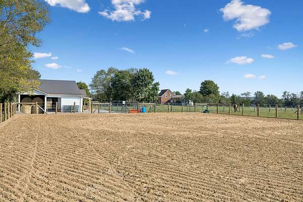 This exceptionally appointed horse farm is perfect for the equine enthusiast! The beautifully laid out 14 acres is completely utilized as well as fenced and cross fenced for your horses and livestock. There is water and shelter in almost every pasture as well as a three stall horse barn with wash stall, hay storage, tack and feed room and office w/kitchen 1/2 bath as well as an 80x180 deep sand arena. The expansive home is a timeless colonial design. This well built brick home has not only 5 bedrooms but an additional workout room, small crafting room and bonus room. Master on the main floor with 4 additional bedrooms and a workout room/ office upstairs. This home has lots of options for a large family, entertaining guests and working from home. The attached two car garage even has a built in underground storm shelter. The roomy kitchen has an ample sized island for eating at as well as a breakfast nook that overlooks the pool. There is also a formal dining room equipped with it's own fireplace. The bright and roomy master bedroom is on the main floor and has a door that walks out to the amazing pool area complete with hot tub and coy pond! Among these features there is picturesque landscaping and a stone waterfall that flows into the pool. Adorable pool house has a bathroom, shower and quaint sitting area with a small kitchen and stone fireplace where you can overlook your amazing poolside oasis. On the East side of the house you'll find the recently completed two bedroom two bath apartment. This living space is well appointed and has a beautiful modern/rustic design. In that same structure you find a lean to large enough to park your truck and trailer, motor home or boat. Behind the apartment is a shop area for all of your farm necessities. This property is has been exceptionally thought out and completed with every detail in mind with high quality materials and workmanship. It has been well maintained and is ready for it's new owners to enjoy it!