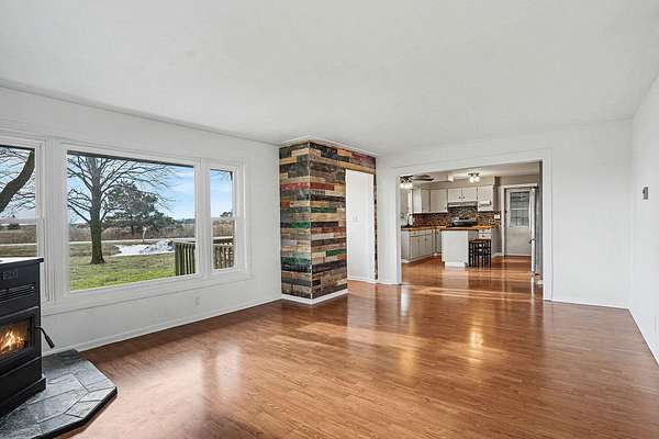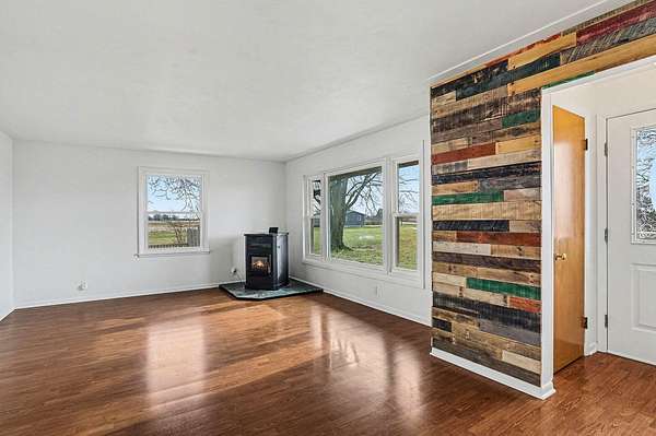 Welcome to this 2 bedroom, 1 bath Ranch home set on 2.36 acres in Coopersville School District. Offering the perfect blend of comfort & functionality in a great location! Kitchen is equipped with butcher block countertops, center island, stainless steel appliances, & convenient dining area. Freshly painted living room showcases a large picture window that fills space with natural light, along with a pellet stove to keep you warm & cozy during the winter months.Radiant electric heat is available. Freshly painted primary bedroom, ceilings & living room with recently updated full bathroom. Large basement offers abundant space for storage, recreation, or future finishing. Outside, you'll find a detached outbuilding complete with garage doors, electric, a workshop, & plenty of storage, making it ideal for hobbies, projects, or additional vehicles. Recent updates: new water heater (2025), water softener (2021), windows (2024), range (2024), & roof approx. 10 yrs old. Easy to make your own!