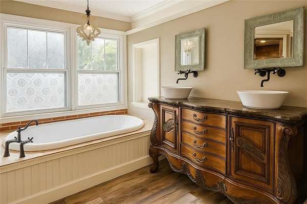 Set back for privacy, this inviting 4-bedroom, 3-bathroom brick home offers over 2,783 sq ft of living space, including two full primary suites--ideal for guests or multi-generational living.