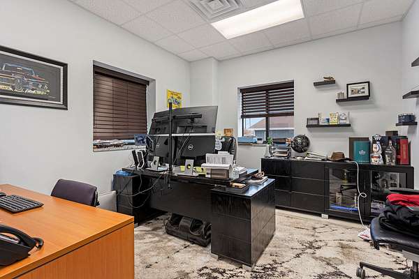 Less than 1 mile from the 131 exchange with easy on and off access, this high traffic building has the crossroads at 76th and Clyde Park. Built in 2019, this 4160 sq. ft. building has 3 suites, with 3 private offices, a waiting room, receptionist space, conference room, open concept office collaboration, shared kitchen, and two 14 ft. heated bays with a private bathroom. Situated on 2.33 acres, the lot is fully fenced in with touchpad security access and 1 EV charging station in the parking lot. Per the aerial photos, massive storage potential with the already 15 semi-trailers parked comfortably in the back. Complete with an electric sign for business customization on Clyde Park Ave, this building would allow for multiple uses for office space, industrial, mechanical, or storage.