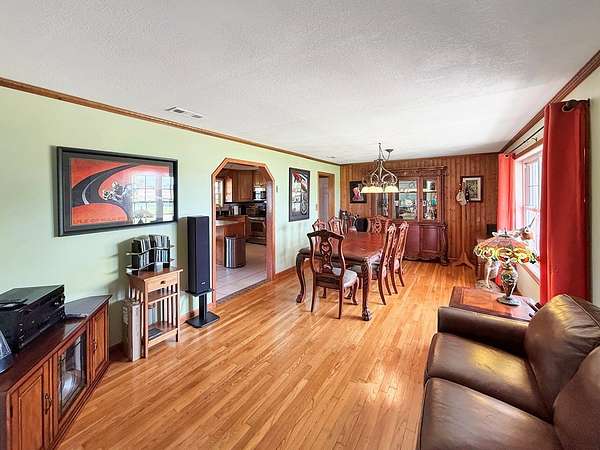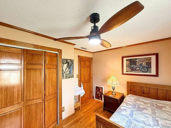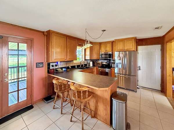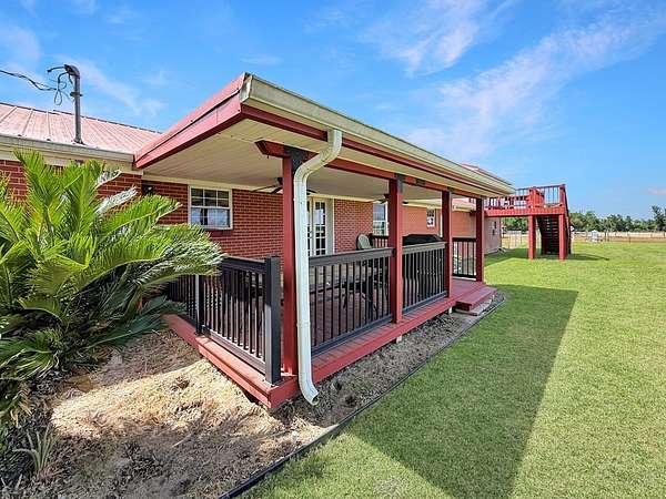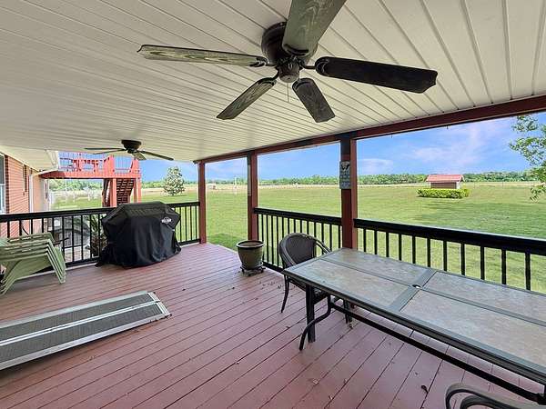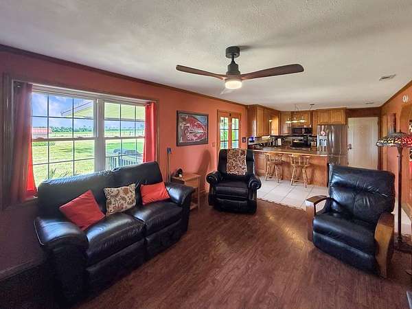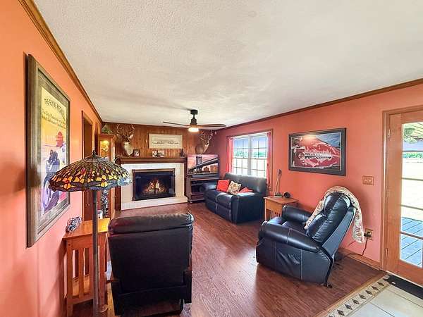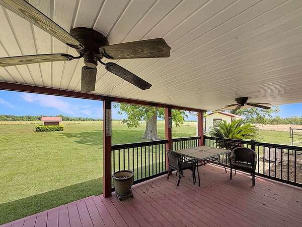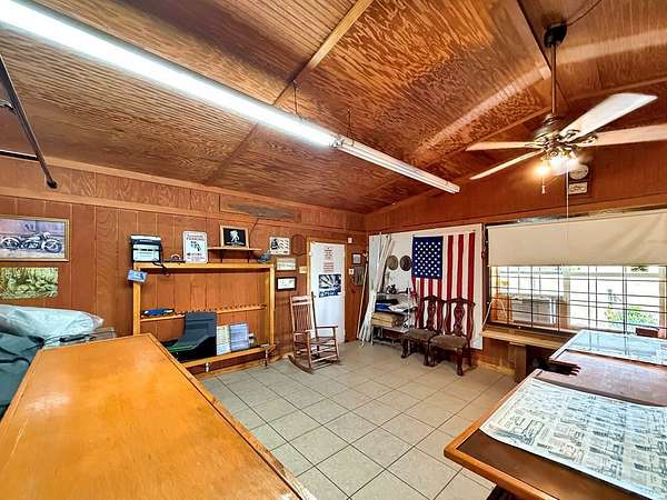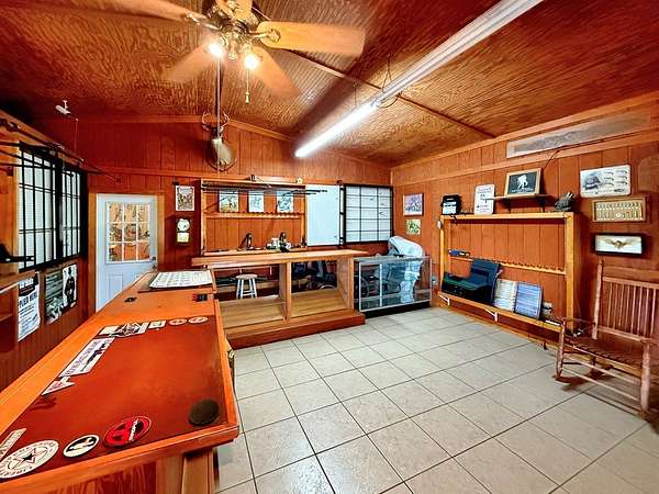 Known locally for the turquoise pond visible from the highway, this 4.95 acre property makes an immediate impression the moment you pass through the double gates. The stocked pond and manicured grounds set the tone for the rest of the retreat, leading you to a home designed for comfort, flexibility, and everyday ease. Inside, the main level features a spacious kitchen that opens to the living room with a fireplace and direct access to the back porch overlooking the yard. A separate dining room, also offering a view of the pond, adds versatility for gatherings or an additional living space. Three well sized bedrooms and two updated bathrooms complete the main floor, including an owner's bath thoughtfully designed for ease of use while maintaining a clean, modern look. Hosting guests is effortless with the private guest suite. Accessible from inside the home, the garage, or its own exterior entrance, this suite includes a full kitchen, living/dining area, bedroom, bathroom, and a relaxing balcony overlooking the property, ideal for extended stays or multi use living. The 40x26 workshop, once used as a successful business, expands the property's possibilities. With plumbing, electrical, tile, and concrete flooring, a rear garage door, and additional lean tos, it's perfectly suited for equipment, hobbies, storage, or future workspace needs. Practical upgrades add peace of mind, including a Generac generator, two active wells, irrigation and pond systems, and major system updates such as the roof and HVAC replaced in 2019. A rare blend of beauty, acreage, and versatility, this Seminole County retreat offers a setting that feels private, welcoming, and ready for its next chapter.
