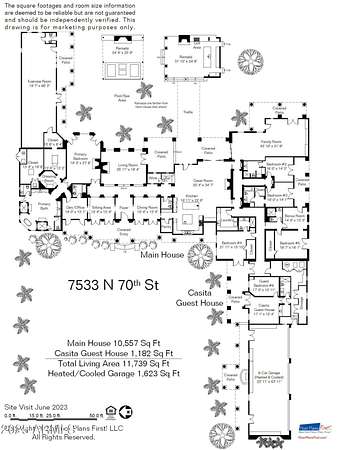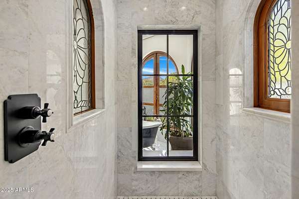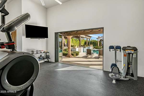 It's about the land, just shy of 2 acres of luxury dirt. Dual entrance , gated and monitored for security. Six car temperature controlled garage with the largest residential solar system on the roof, owned free and clear of course . Landscape designed to be green and flower year round with many trees . Think Central Park, not Palm Springs. Chefs outdoor kitchen in a living room like gazebo is poolside. Then the Home- warm and welcoming with all the rooms one would expect. Game room, Wellness room with gym, office, library, casita and all bedrooms ensuite. The primary suite has 2 of everything and so much more. This estate must be experienced .