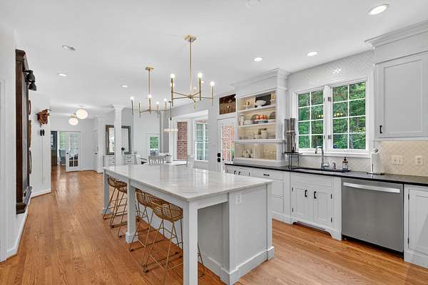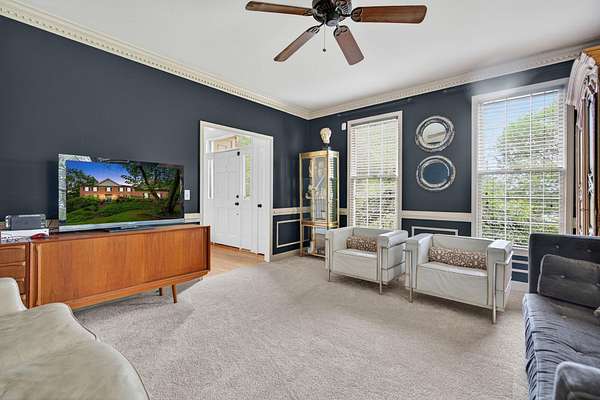 - Built-Ins, Chair Railings, Crown Moldings, Dining Area, Elevator, Family Room