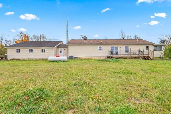 Take in the peaceful countryside views from your rear deck or relax under the spacious covered front porch. This inviting ranch home sits on 3.21 acres and includes a 66x36 pole building with water and electricity. Making this pole building perfect for hobbies, storage, or a workshop. Inside, you'll find an open-concept layout featuring 3 bedrooms and 2 full baths, including a primary suite with access to a cozy 3-season room and French doors leading to the covered deck. A full walk-out basement offers endless possibilities for future finishing, while the attached 2.5-car garage and large breezeway provide plenty of storage and convenience. Ready for you to make it your own! Call today for your own viewing! This company makes no warranty or representations about the contents of this data. It is the responsibility of the parties looking at the property to satisfy themselves as to the accuracy of this information. Taxes were obtained from the local assessor and the taxes could change for the buyer after a closed transaction.