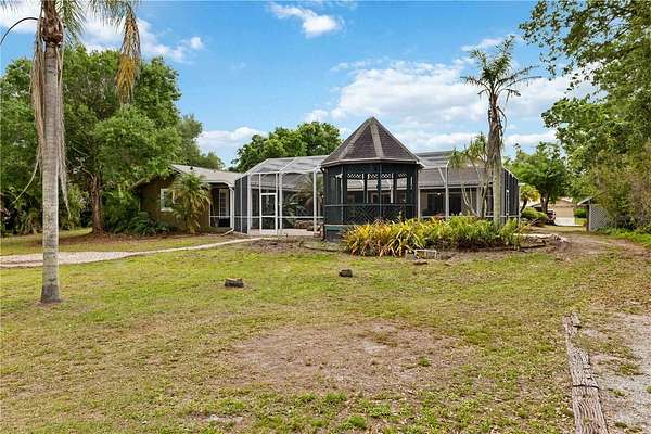 Welcome to 7535 Castle Drive in Sarasota’s Racimo Ranch—over two pristine acres meet endless potential. Just shy of 3,000 square feet, this 5-bedroom, 4-bath home features vaulted ceilings and a flexible layout perfect for adding a mother-in-law suite. The grand horseshoe-shaped driveway leads to a rare 3-car attached garage.