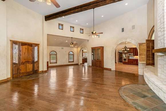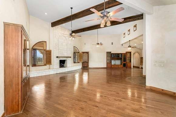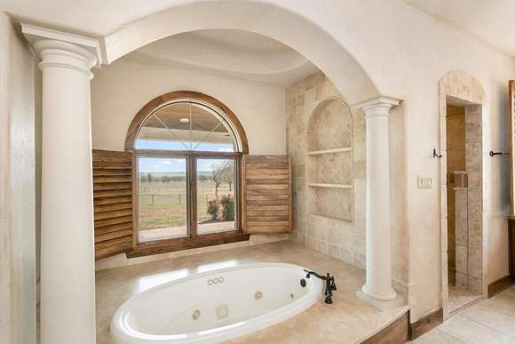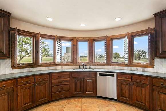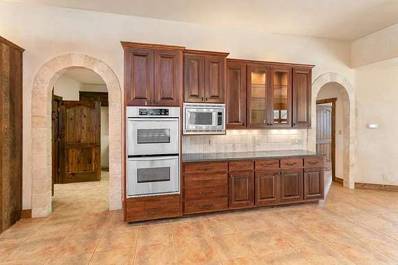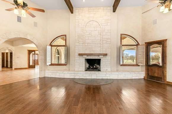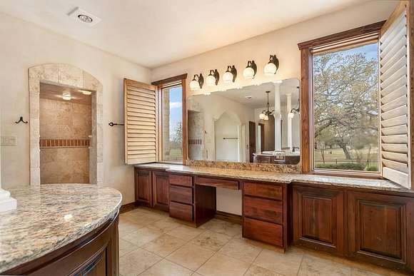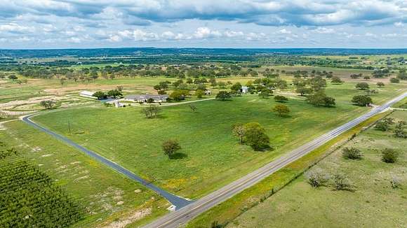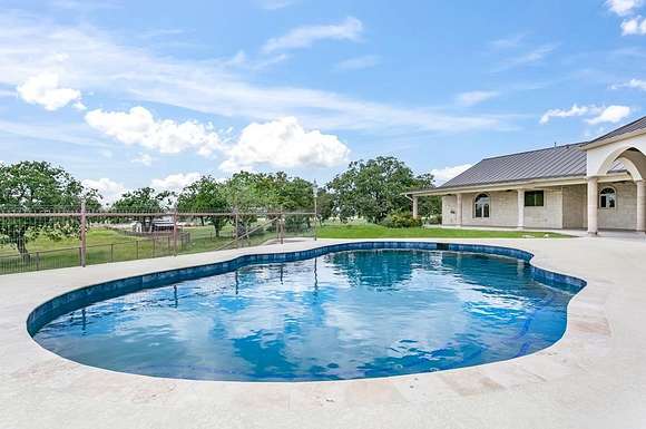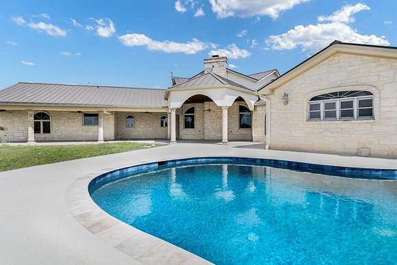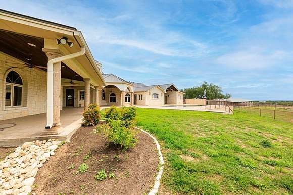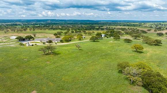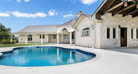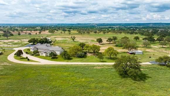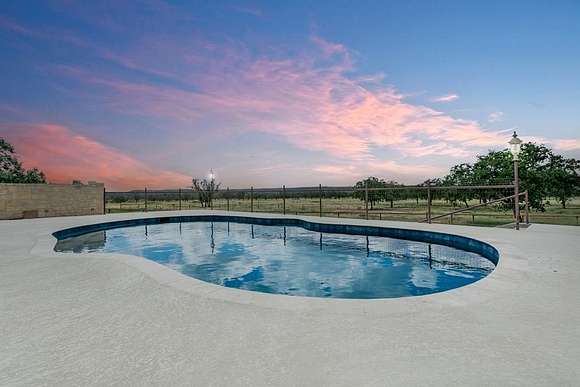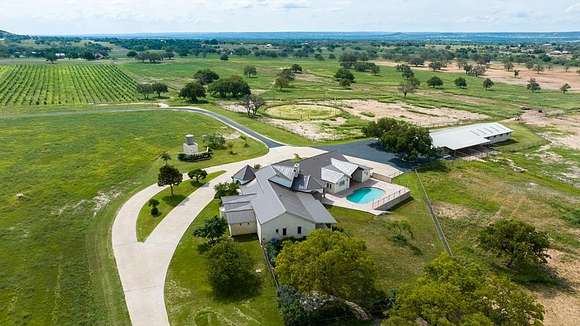 Spectacular 5466 sq.ft Main Home, built in 3 Br/ 2.5 bath with expansive kitchen offering granite countertops and large island accented by numerous windows for maximum light exposure. The great room consists of an oversized masonry fireplace and cathedral ceilings. The Master Suite consists of a one of a kind master bath with soaking tub (offering incredible views of the Hill Country) his and hers closets, double sink vanity island and walk in shower. Over 1800 sq.ft. of covered porch and 3400 sq.ft. of patio around the pool offers ample room for entertaining. The pool area also offers an additional bathroom and room for an outdoor kitchenette. Newly Remodeled Guest Home: 1,781 sq.ft. (2 Br/ 2 Ba) with 696 sq.ft. of covered front porch and 576 sq.ft detached carport. Horse Barn: 16 stall Horse barn (6160 sq.ft.) with wash rack, tack room and living quarters. 8 of the stalls offer small turnouts. To the East of the Horse Barn lies a round pen. Metal Barn: 4000 sq.ft. with concrete slab and lean-to ideal for farm implements, storage, etc. The property is highlighted by an established 10+/- acre vineyard for the wine enthusiast.