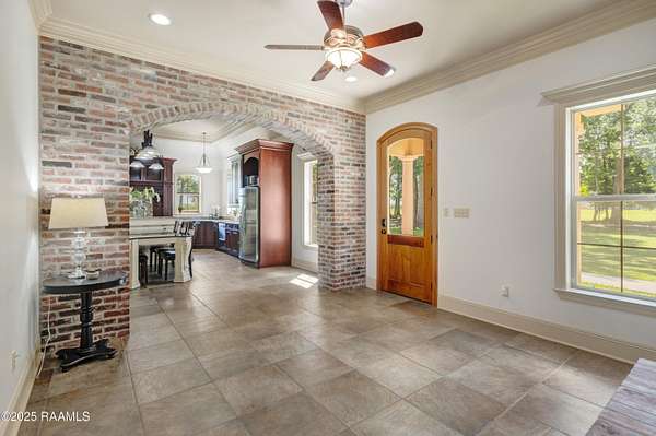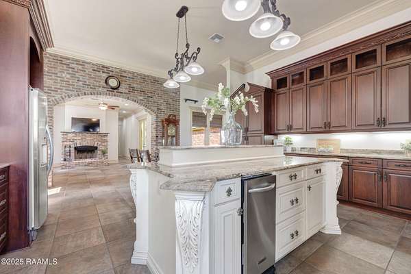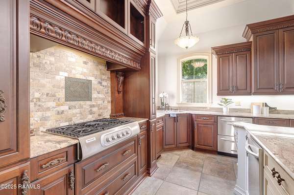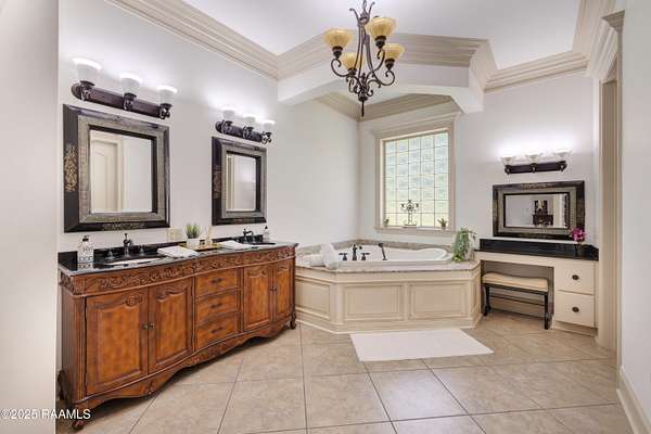 - 9+ ft Ceiling, Crown Molding, Double Vanity, Electric Dryer Con, Electric Washer Con, Gas Stove Con, Kitchen Island, Primary Bath, Separate Shower, Walk-In Closet(s), Whirlpool, Window Treatments