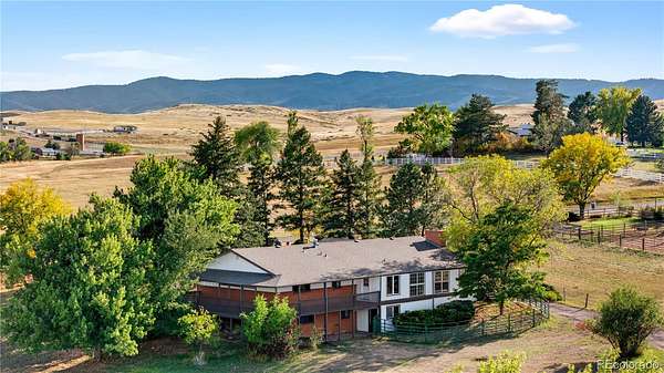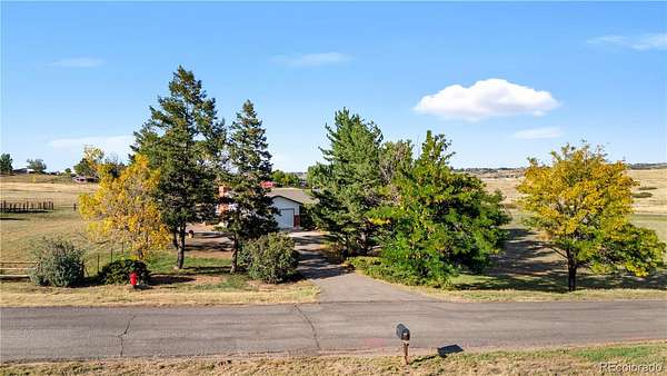 4.77 acre property ZONED FOR HORSES near all of the city amenities! Located in the small subdivision (29 homes) of Plum Valley Heights. Near Chatfield Reservoir, Waterton Canyon and less than 15 min to Castle Rock, 15 min to Downtown Littleton, and 30 minutes to Denver. Horse riding trails throughout the subdivision and close to an outdoor arena. HUGE 2200+ sqft WAREHOUSE FOR RV's TOYS, or WORK SHOP! NEW SEPTIC TANK! The home has NEW INTERIOR AND EXTERIOR PAINT and NEW CARPET throughout. Kitchen and baths updated about 8 years ago, 3 bedrooms and 2 baths on the main floor, 1 bedroom and 1 bath in the walk out basement. Cherry wood cabinets in the kitchen, granite counter tops. Large formal dining room and living room. Large family room with wood burning fireplace opens to enclosed patio and walk out deck with great views of the property. Primary bedroom has private updated 3/4 bathroom. Finished walk out basement offers bedroom and bath w/ huge walk in closet, workshop/storage room with cedar closet, additional den/family room with wood burning fireplace. Enclosed patio with hot tub! This property currently has smaller shed/barn PLUS an large warehouse w/ concrete flooring, electrical and heat source. Easy to park and RV in with oversized door, 220 outlets and heat source perfect for the car enthusiast, RV parking or workshop of your dreams. Easy to install fencing and create a great pasture for horses! Property was once on well water, currently on public water. Quick possession and closing possible. A short 10 minutes to 470 and Santa Fe Dr., less than 10 minutes to Roxborough Safeway shopping center for groceries, restaurants, gas station, public library and day care just to name a few places.