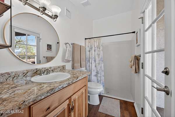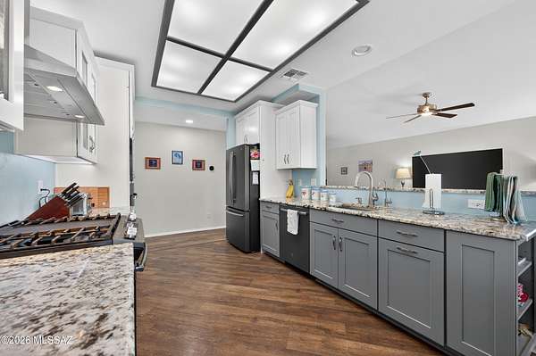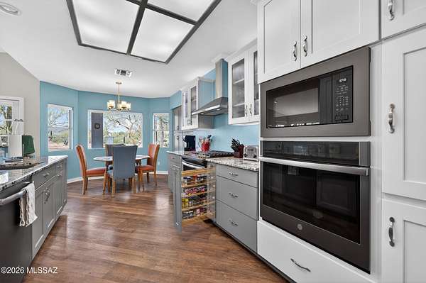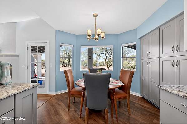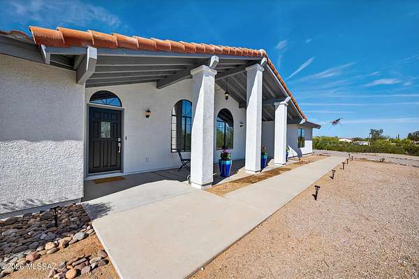 Set on approximately 2 acres at the end of a cul-de-sac, this beautifully renovated ranch-style home offers space, privacy, and convenience--all just minutes from shopping, grocery, medical, golf, and easy freeway access. Nearly fully renovated, this move-in ready home blends modern upgrades with classic charm. Inside, you'll find 2,566 square feet with 4 spacious bedrooms and 3 bathrooms, including a private mother-in-law suite with its own exterior entrance--perfect for guests, extended family, or flexible living. The kitchen has been thoughtfully updated with granite countertops, soft-close cabinetry, and a full suite of stainless steel appliances, including dual ovens. Hickory wood cabinetry and granite surfaces continue throughout the bathrooms, creating a cohesive, high-quality finish. Step outside and the property truly opens up. Surrounded by over 50 mature saguaro--including a rare centurion--you'll enjoy Sonoran Desert beauty in every direction. The expansive covered patio is ideal for relaxing evenings, with stunning sunset views over Sombrero Peak, while the front porch offers the perfect spot for peaceful mornings or even Fourth of July fireworks. Additional highlights include: Owned solar with extremely low monthly utility costs, newer HVAC with smart thermostat, partial new roof, workshop space with mini-split AC, RV parking with hookups, and a barn-style storage shed. The property also offers front and rear access and room to expand. Located in Continental Ranch with access to community pools and amenities, this home offers the rare combination of acreage, upgrades, and proximity to everything Tucson has to offer.