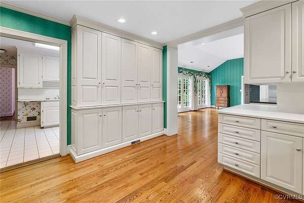 - Bedroom On Main Level, Bookcases, Built In Features, Dining Area, Eat In Kitchen, Fireplace, French Doors Atrium Doors, Granite Counters, Main Level Primary, Recessed Lighting, Separate Formal Dining Room, Walk In Closets