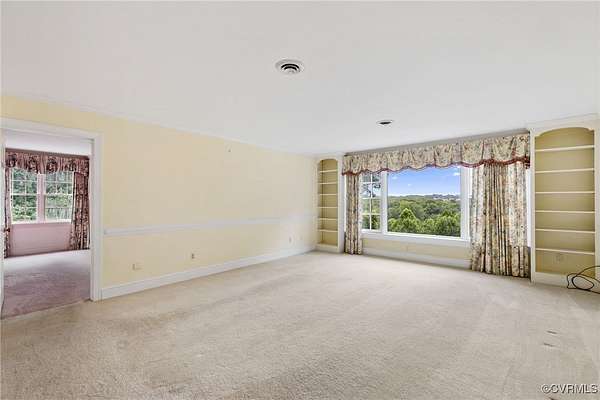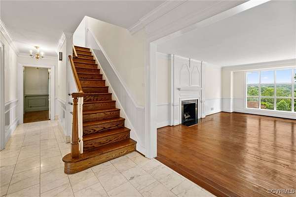 Perched on a knoll on 2+ tree lined acres with exceptional winter views of the James River, this expansive brick home with slate roof offers well scaled living and entertaining spaces for the most demanding owner. A rare floorplan provides first and second floor primary suites which affords comfort for multi-generational living or perhaps a caretaker or Au Pair. Gracious formal spaces create a lovely setting for entertaining and family holiday gatherings. The bright white center island kitchen has an adjoining bulters pantry providing great prep space and exceptional storage for that gourmet cook. There are 4 of 5 bedroom and 6 full baths. The warm and inviting paneled library offers one of the three fireplaces plus there is a separate writing nook for the lady of the house. A most inviting light filled sunroom with brick floor is tucked at the rear of the first floor and leads to a spacious brick terrace. If virtual offices or excercise areas are required , there are multiple options on any level. Closets placed throughout the first two levels plus a partical basement provides generous storage. There is a two car attached garage with built-in storage, two automatic doors and outside panel for lifting doors. The home is located just steps away from the Pony Pasture Park at the river's edge and only a 10 minute drive to University of Richmond, as well as Collegiate, St. Catherines, St Christophers and Trinity Private Schools. Available for immediate occupancy, there are some areas just waiting for the new owner's personal touches. Come See, Come Fall in Love with this special home offering abundant character and sought-after sanctuary!! Property also includes .164 acre plot acroos riverside Drive at the River's edge known as 7538 Riverside Drive Parcel ID# C004-0049-048.