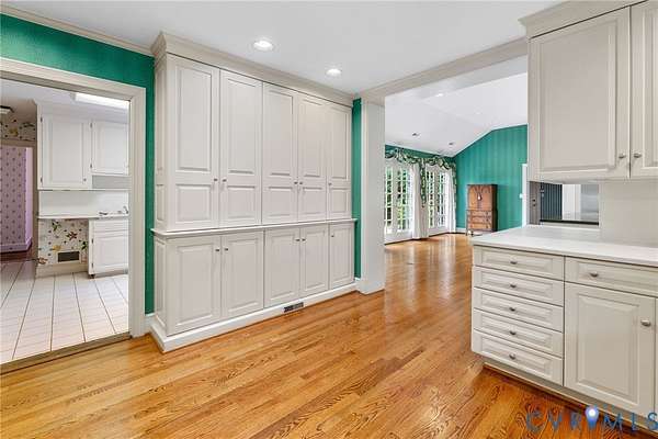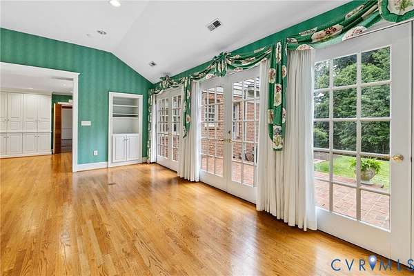 - Bedroom On Main Level, Bookcases, Built In Features, Cathedral Ceilings, Fireplace, French Doors Atrium Doors, Kitchen Island, Main Level Primary, Solid Surface Counters