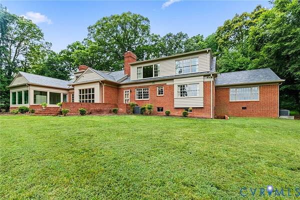 Perched on a 2.2 acre tree lined parcel with exceptional Winter Views of the James River, this expansive brick home with slate roof offers well scaled living and entertaining spaces for the most demanding owner. A rare floorplan provides first and second floor primary suites which affords comfort for multi-generational living or perhaps a caretaker or AuPair. Gracious formal rooms create a lovely setting for entertaining and family gatherings. A bright white, center island kitchen has an adjoining butlers pantry providing great prep space and exceptional storage for that gourmet cook. There are 6 bedrooms and 6 full baths.A warm Library with Black Walnut paneling and one of 3 fireplaces also leads to a brick terrace. A generously scaled Family room with pine paneling, fireplace and wetbar leads to a light filed solarium with beautiful River views.A sunken living room with third fireplace has beautiful river views, Hardwood floors and doorway leading to brick terrace.There is an attached 2 car garage.The home is located just steps from the Pony Pasture Park and is a quick 10 min drive to St Catherines, St Christopher, Trinity and University of Richmond campuses. Avaialble for immediate occupancy, there are areas waiting for the new owners personal touches.Come see, come fall in love with this rare property which provides a most sought after sanctuary plus an additional parcel along the waters edge Id #C004-0049-048.