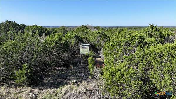 Located inside the gated Smith Ranch community on the western edge of Lampasas County, this 40.3-acre recreational and hunting property offers rugged Hill Country terrain, dense tree cover, and abundant wildlife. The land is heavily wooded with live oak, cedar, mesquite, and persimmon, creating excellent habitat for whitetail deer, hogs, turkey, aoudad, and other native game. The property includes a hunter's cabin with bunk room, small kitchen/living area, full electrical service, fiber internet up to 1 GB, and rainwater collection for water. Owner updates include exterior paint, laminate flooring in the cabin and outhouse, interior walls in the cabin, and roof on the outhouse. Additional improvements include 4 hunting blinds, 3 wildlife feeders, 3 wildlife water tanks, fire pit, picnic area with lighting, and rough trails throughout the property. Smith Ranch landowners enjoy access to seven private common areas along the Colorado River, offering opportunities for fishing, swimming, and relaxing along the water-known for excellent catfish and bass fishing. No mandatory POA. Ideal for a private hunting retreat, weekend getaway, or recreational property in the Texas Hill Country.