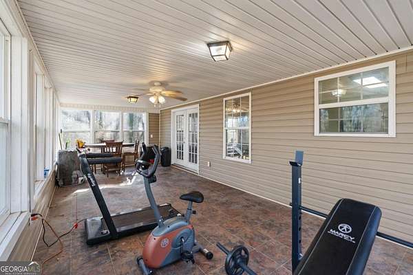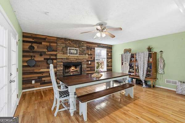 Welcome home to this beautiful 5 acre working mini farm in Lula, offering the perfect blend of beauty, comfort, and country living with no HOA. This spacious 4 bedroom, 2 full bath, 2 half bath home features gleaming hardwood floors throughout, a bonus room, and an unfinished basement ready for future expansion. The main level offers an open concept kitchen with granite countertops that flows seamlessly into the dining area, highlighted by a cozy wood burning fireplace, ideal for gatherings and everyday living. The bright sunroom provides the perfect spot to enjoy morning coffee or unwind in the evenings while overlooking the pond and scenic surrounding landscape. The unfinished basement is heated and cooled and stubbed for a bathroom, providing excellent potential for additional living space such as a home gym, media room, or in law suite. Outside, the property truly shines as a functional mini farm and private retreat. Features include chicken coops, a fenced pig pen, multiple fenced areas ideal for animals or dogs, established fruit trees, flowering plants, and ample space for gardening, farming fruits and vegetables, or expanding your homestead. A detached two car garage, detached carport, pole barn, and gazebo provide excellent storage and outdoor entertaining options. The property also enjoys access to a shared pond with availability for fishing, adding to the peaceful, recreational lifestyle this land offers. With room for animals, gardening, recreation, or simply enjoying privacy and open space, this property offers endless possibilities for those seeking a true country living experience. If you are looking for beauty, comfort, and a lot of land, this is the one for you. Conveniently located with easy access to Lula and major highways, this unique mini farm delivers the space, flexibility, and lifestyle that so many buyers are searching for. Schedule your private showing through ShowingTime before this opportunity is gone.