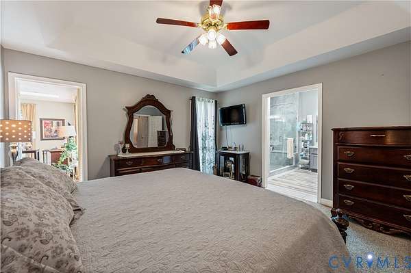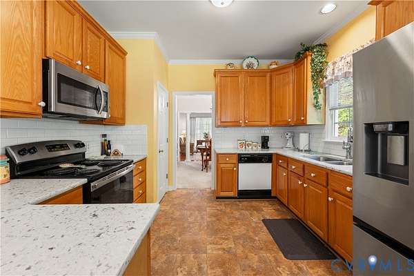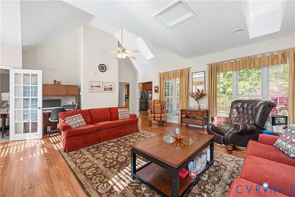 Welcome to this beautifully maintained, charming one-owner home that seamlessly blends comfort and elegance on 2.5 private acres in Hanover County. The lush, landscaped yard is a vibrant retreat, showcasing blooming azaleas, graceful dogwoods, and a studding cherry tree, providing year-round serenity. For peace of mind, a whole-house generator is ready when needed. Inside, the sunroom beckons, connecting the primary suite, kitchen, and family room - perfect for relaxation or entertaining, bathed in natural light from skylights and large windows. The family room, with its gas fireplace and soaring cathedral ceiling, feels both warm and spacious. Retreat to the primary suite, offering a generous walk-in closet and a beautifully remodeled bath with glass shower doors and a tiled seating area for a spa-like retreat. The kitchen shines with sleek quartz counters and a handy pantry. With abundant storage throughout and a two-car attached garage, this home effortlessly combines style, functionality, and comfort.