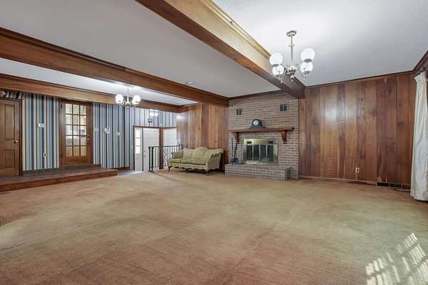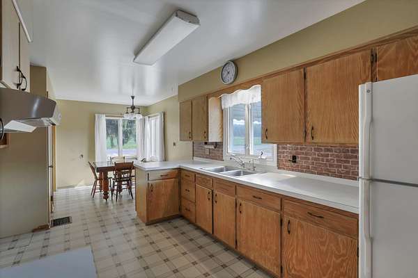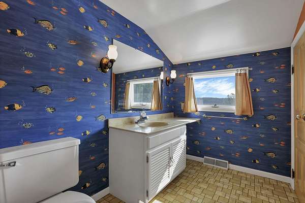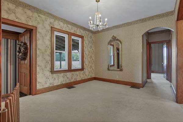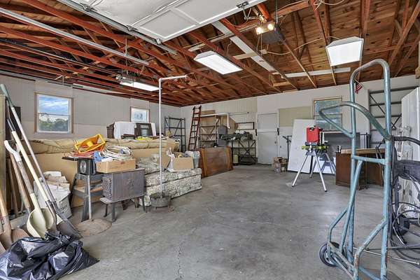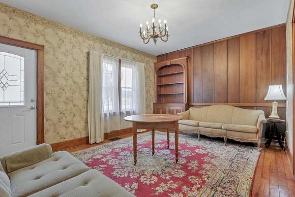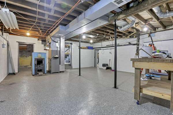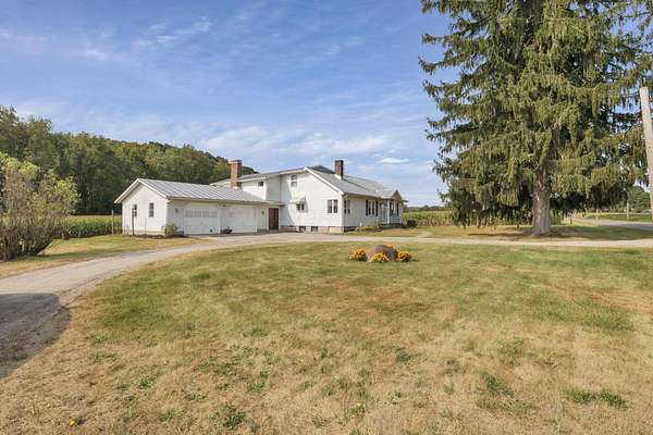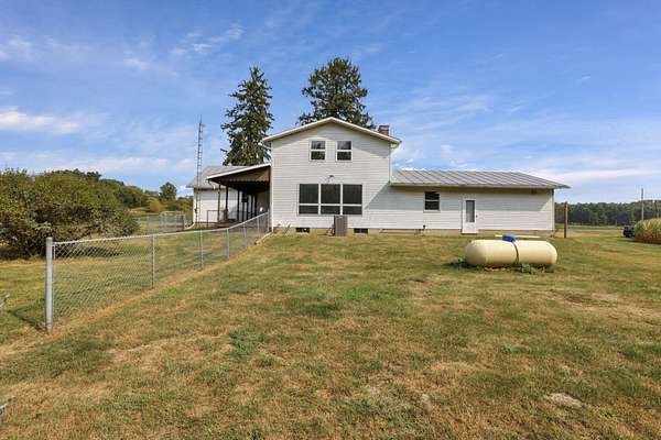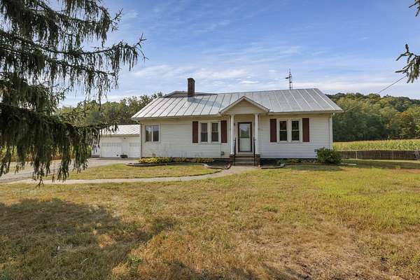 Welcome to your country retreat! This 4-bedroom, 2-full-bath home blends charm with functionality. The original portion of this home features hardwood floors, beautiful woodwork, and an original built-in, while the 21x19 family room offers solid wood paneling and a wood-burning fireplace (w/ blowers). Two bedrooms and one bath are conveniently located on the first floor. The oversized 30x27 garage includes a separate staircase to the large usable basement (over 1300 SF), providing excellent storage and workshop options. Dual HVAC systems add efficiency: a propane heat pump serves the upstairs and family room, while a fuel-oil system (with tank in garage) heats the original section of the home. metal roof. Outdoors, enjoy the country setting from a large back porch and a partially fenced yard-perfect for pets, gatherings, or quiet relaxation.
