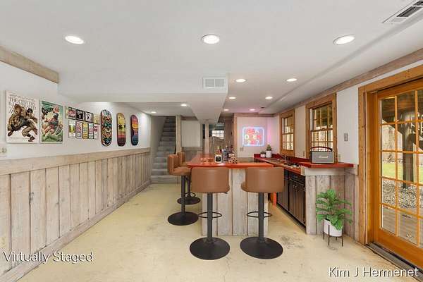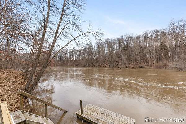 Welcome to your private Thornapple River escape -- perfectly set on 2.39 wooded acres with 150 feet of river frontage and unmatched privacy. Tucked midway between the road and the water, this home is surrounded by mature trees, creating a peaceful, secluded setting that truly comes alive in the summer and fall. Inside, the freshly repainted main floor offers a bright, open-concept layout with a spacious living room flowing into the kitchen and dining area -- ideal for gathering and entertaining. Two beds / two baths complete the main level living space. Spacious heated mud/workroom from garage to house. The walk-out lower level expands your living space with a large family room, second kitchen/entertaining area, additional bedroom, half bath, and direct access to the backyard -- perfect for hosting or multi-generational living. Step outside to a large deck and dock where kayaking, fishing, and relaxing by the water become part of everyday life, with parkland views across the river. Significant updates throughout the home provide added peace of mind, including a whole home generator (2024), new water heater (2024), furnace (2020), central air (2016), roof (2017), and replacement windows (2000-2002). The well was replaced in 1999, and a dedicated riverside deck was added in 2012 -- creating the perfect spot to take in the views or unwind by the water. Storage is abundant both inside and out, with multiple storage areas throughout the home and two additional storage sheds on the property -- ideal for tools, outdoor equipment, and recreational gear. The setting itself is what truly sets this property apart. Located on a quiet stretch of Thornapple River Drive, the combination of wooded acreage, thoughtful home placement, and parkland across the river ensures long-term privacy and uninterrupted natural views -- a rare find. Whether you're looking for a full-time residence, a weekend retreat, or a property with space and flexibility to make your own, this home offers a unique opportunity to enjoy riverfront living with comfort, character, and room to grow.