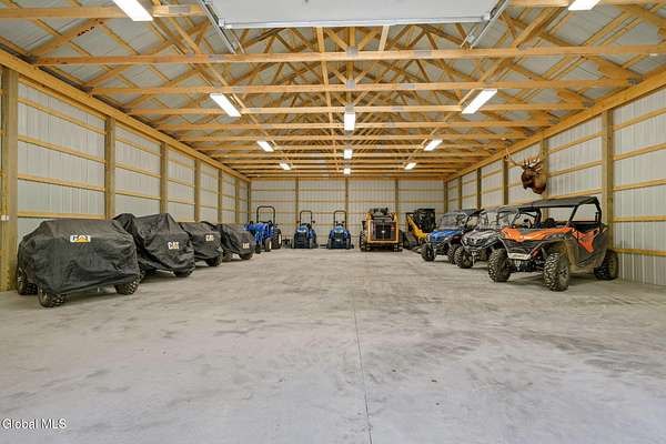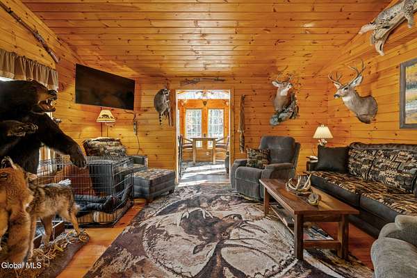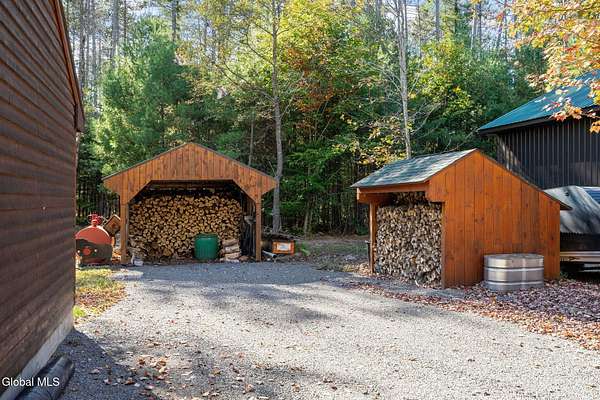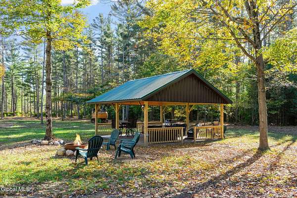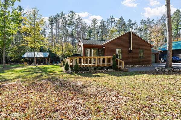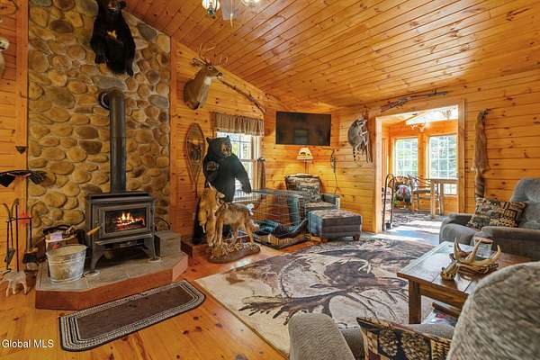 Swipe right on your Adirondack dream retreat! Drive through the gates and down the tree-lined driveway to discover this private and secluded gem. Nestled among tall pines on 52+ acres backed by Miller Brook, this move-in ready home checks every box for comfort, adventure, and year-round enjoyment. Inside, cozy up in the 2-bedroom, 2-bath ranch with an inviting open-concept living space. Spend winter nights by the wood stove, or start your mornings in the 4 season room with coffee in hand as you gaze out over peaceful, wooded views. Home amenities include: knotty pine throughout, new carpet, vaulted ceilings, open concept kitchen/living room, central air, attached garage, and generator hook up. Step outside, and the extras make this property a true one-of-a-kind find. Contractors and toy enthusiasts will beam with pride at the brand-new 40'x60' pole barn, fully equipped with electric, concrete floor, and LED lighting inside and out. Hunters will enjoy year round target practice with their own shooting range. Love to entertain? Host gatherings in the brand-new 20'x25' outdoor pavilion with stamped concrete and full electric--ready for your lighting and surround sound to create the ultimate venue. Adventure seekers will love the 5+ miles of private, marked trails right on the property, plus direct access to 500+ miles of Lewis County ATV trails and the C8C snowmobile trail. And when you're ready to explore beyond home, you're just a 15 minute drive to Boonville, 20 minutes to Tug Hill or Lowville, and 25 minutes to Old Forge. Whether you're relaxing, working, or playing, this Adirondack escape truly delivers it all! Can be sold turn-key, inquire with listing agent for a full list of available items. Showings Thursday - Sunday, 48 hours notice required.