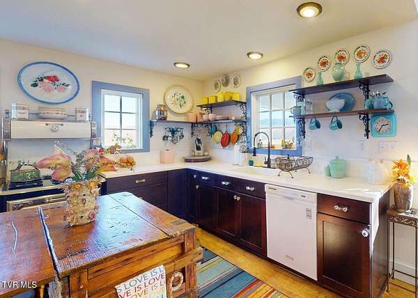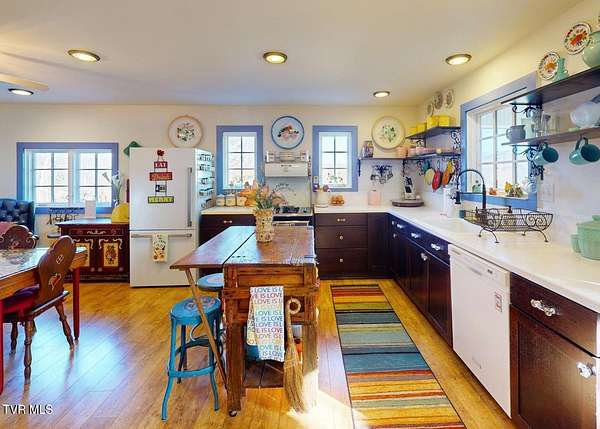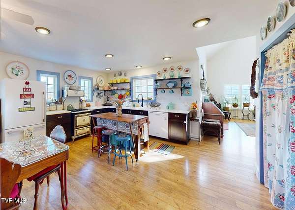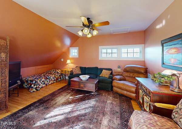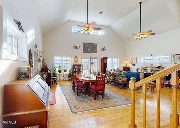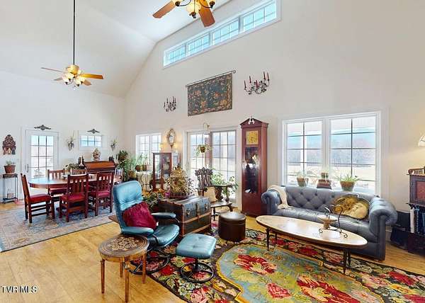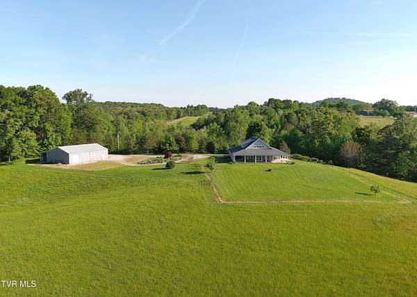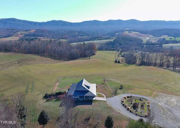 Modern Farmhouse on 37+ Acres with Incredible Mountain Views & Second Residence/Rental. Stunning, no-step entry home, perfectly situated on 37.71 acres of serene countryside. House 1/3 mile from road. Fenced yard for kids/dogs. Property boasts a harmonious blend of comfort, functionality, & breathtaking natural beauty, making it an ideal retreat or forever home. Main house exudes style & charm with spacious rooms, 2.5 baths, inviting open loft bedroom & private office. A quintessential farmhouse with wrap-around 12' porch on 3 sides, perfect for enjoying panoramic views. The great room is the centerpiece of the home, with a soaring 17-foot ceiling. Kitchen has a Heartland propane stove, oak cabinetry, Corian countertops & instant hot water. Main-level primary bedroom with bath & walk-in closet. A small flex room connects the closet to the mudroom and could easily be transformed into a nursery, pantry, or extended closet. Attached three-car carport for convenient parking. Finished basement area w/private entrance, full bath with step-in jetted tub offers multiple possibilities. The unfinished portion is ideal for storage, hobbies or exercise. Metal roof/2 years old, heat pump/1 year old, no exposed exterior wood & propane tank owned. Partially wooded acreage is fenced & has cross-fenced pastures. There are 4 exterior water spigots & a cattle water station. There is pear, pawpaw, apple & fig trees & blueberry & blackberry bushes & a vibrant perennial flower garden as well as a kitchen garden. Enjoy evenings by a firepit nestled in the woods. Additional structures include a 40x60 insulated metal building with two oversized garage doors, two large workbenches & is stubbed for water. Second residence is a fully furnished 2005 14x48 MH featuring new metal roof, 2BR, 1BA, full front deck with stunning mountain views & a 12x20 shed for storage. Buyer and\or Buyer agent to verify all information.