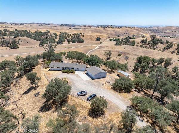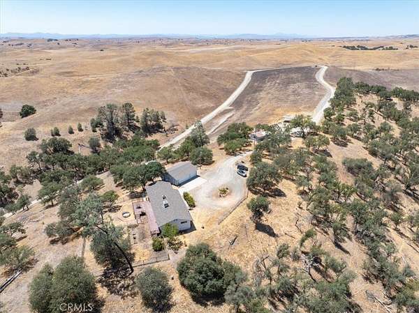 Private and peaceful country living await you on this beautiful 60 acre parcel! You'll love the 2000+/- sq. ft home with three bedrooms and two baths. In addition to the living room and family room there is a bonus room, office space and laundry room. Next to the home is a detached three car garage and there is an additional shop building for storage or the hobbies of your choice. But wait, there's more! There is a cute incomplete structure that could possibly be used as an ADU. The land is a combination of open rolling grazing ground with the compliment of native oaks and pines around the home and down the hillsides. The views are gorgeous, the land would be excellent for horses and cattle. There's plenty of usable ground for additional improvements too! Lots and lots of possibilities here!