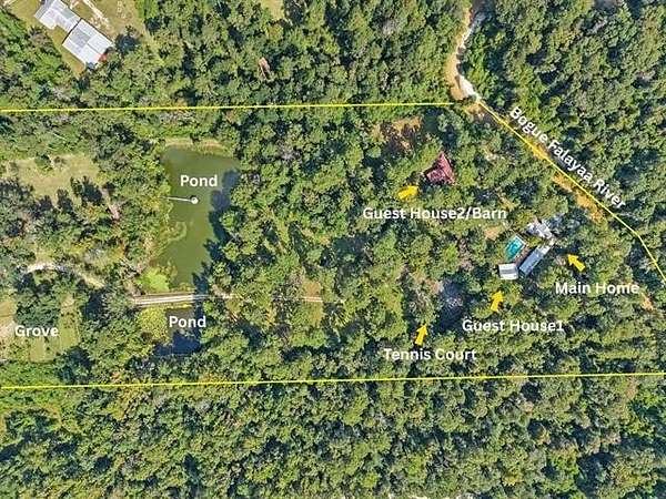 Beautiful country estate on 16.8 park-like acres along the Bogue Falaya River! This one-of-a-kind property offers unmatched privacy and exceptional recreational amenities, all just minutes to downtown Covington.