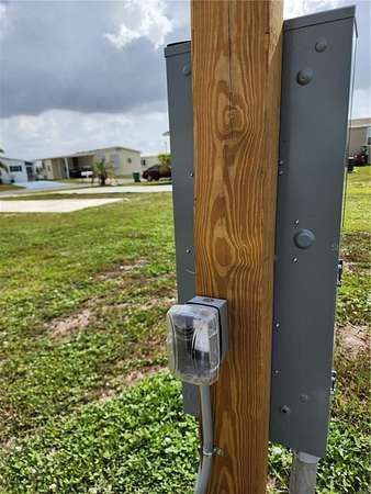 LARGE ENOUGH FOR A DOUBLE WIDE PLUS A CARPORT AND SHED! New 200 AMP main breaker meter panel. Conveniently located on the first street within the community - and only a few lots down the street from the TWO LARGE POOLS & RECREATION CENTER. This property also affords you a VIEW OF THE LAKE across the street. In addition, the neighbors are friendly and will welcome you to the park right away. Tucked away - yet close to everything - VHL is a wonderful, GULF ACCESS community with a BOAT RAMP, fishing pier, and boat slips. GROUNDS MAINTENANCE is included in the low monthly fee. Here you can be as social as you'd like with its many activities such has horseshoe tournaments, block parties, woodworking, billiards, pot luck dinners, and so much more! Both full-time residents and snowbirds love to call Village of Holiday Lake home. Come check it out for yourself today.