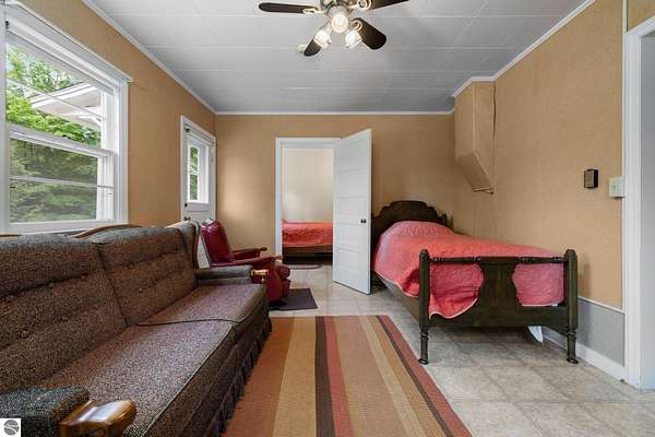 Classic country cottage in the heart of Sleeping Bear Dunes National Lakeshore! This 9 acre parcel offers a rustic cottage, plus a guest house and a storage building located on a high bluff in the hills overlooking Little Glen Lake. This is a unique setting with the National Park bordering the property on west and south sides, offering an extremely private location and a small view of the lake. The cottage features rustic design but with some updates including a newer heating system and some newer windows. The guest house serves as a overflow for your summer friends with a new septic system. Both cottage and guest house are fully furnished and ready for your enjoyment. A large 1,120 sq. ft. block building allows for storage of all your toys. The adjacent "Heritage Trail" along S. Dune Highway for walking or biking is right out your door. Create your own estate with this one of a kind property and enjoy the beauty and relaxation of Leelanau County and Northern Michigan!