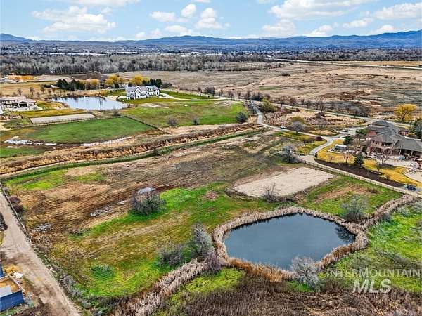 This exquisite 5.78-acre homesite with its own private pond presents a rare opportunity to create a truly exceptional residence. Surrounded by serene nature and peaceful solitude, yet just minutes from Meridian shopping/eating out amenities, downtown Star -including Freedom Park and the Star Riverwalk along the Boise River - this location offers privacy without sacrificing convenience. Enjoy fishing, paddle boarding, kayaking, or quiet evenings by the water from your own property. Open valley views stretch toward Bogus Basin and the Boise Mountains, creating a stunning backdrop for a thoughtfully designed custom estate. Neighboring pastures enhance the sense of space and exclusivity. Whether you envision an elegant modern estate or a timeless farmhouse with room for horses, this property provides the setting to build something remarkable - a home that reflects your lifestyle and the beauty of Idaho living. Bring your own builder or ask about our trusted local custom home builders to bring your vision to life.