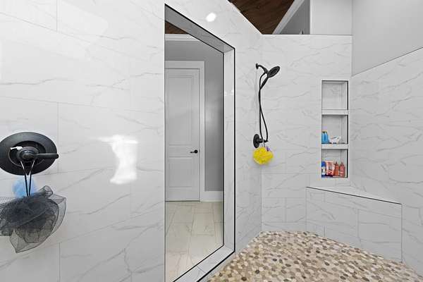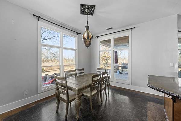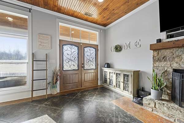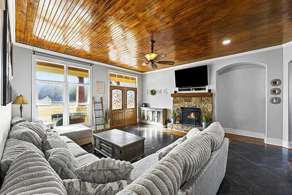 Welcome to Cedar Stone the coziest cedar and stone home around. Where modern comfort meets rustic charm. This spacious, beautifully updated residence sits on over 2 private acres, offering room to breathe and a serene natural setting. Inside, you’ll find scored concrete floors, sleek concrete countertops, and thoughtfully designed living spaces with soaring high ceilings that create an open, inviting feel. The large primary suite features a luxury bathroom designed for relaxation, complete with high-end finishes and an elevated spa-like experience. With its warm architectural character, generous square footage, and acreage rarely found at this price point, this home blends style, function, and tranquility into one perfect package. Ideal for those seeking a unique property with modern updates and timeless appeal.