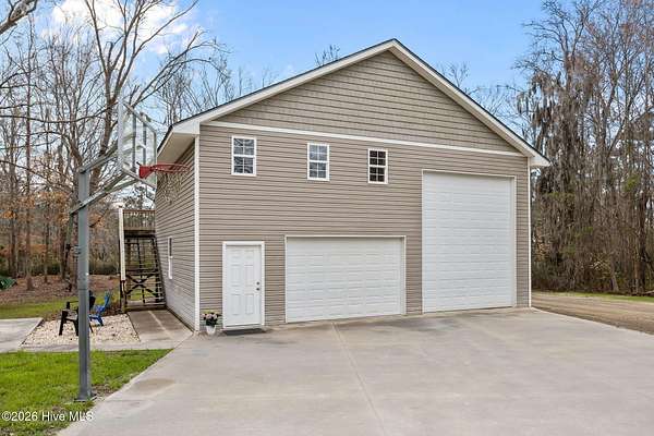 Enjoy the charm of coastal living just outside historic Bath with this 4-bedroom, 2-bath home situated on 3.27 acres. Outside, you'll find a two-story outbuilding (30' X 40'') perfect for a workshop, boat/RV storage, or extra space for hobbies and equipment. The outbuilding also includes an unfinished apartment space (600 sq. ft.), offering great potential for a guest suite, rental opportunity, or private workspace once completed. The apartment area will require finishing work and installation of a septic system, giving the next owner the opportunity to customize the space to fit their needs. The property also includes shared deeded water access to the Pamlico River, making it easy to enjoy kayaking or relaxing by the water just a short golf cart ride away. With over three acres, versatile outbuilding space, and access to the water, this property offers a unique opportunity to enjoy the peaceful lifestyle of eastern North Carolina.