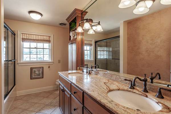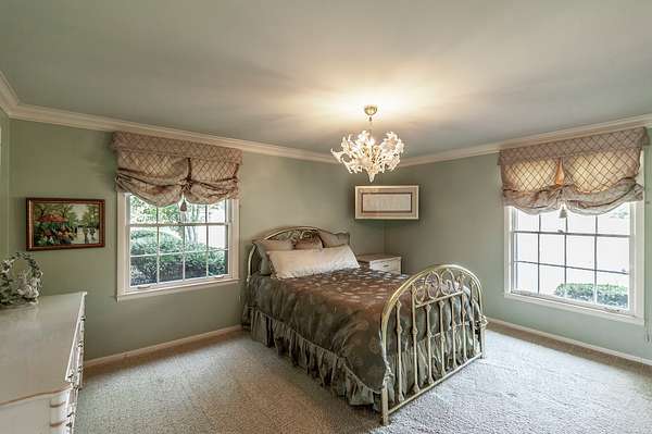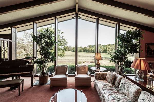 The property includes two dwellings, ideal for multi-generational living or extended guest quarters. The main residence (4,631 sq. ft.) showcases original elements reincorporated from the 1791 homestead--hand-hewn beams, slate, wood slabs, and foundation stones. Custom features abound, including herringbone wood floors, a brass/copper vent hood with "old world" tile backsplash, and a living room designed by renowned builder Braxton Dixon (Johnny Cash's builder), with a striking wall of glass. Additional details include a large front door salvaged from a church and beveled glass door inlays separating the living room from kitchen. The guest house, built in 1975, adds 2,028 sq. ft. of comfortable living space.