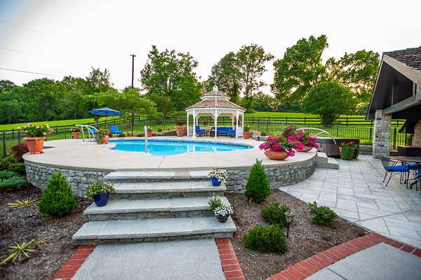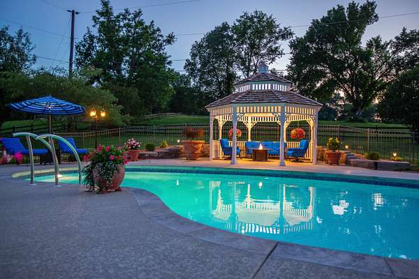 The outdoor spaces are just as impressive. A heated saltwater pool, gazebo, aluminum fencing, and propane fire pit create the perfect setting for entertaining. A concrete pad with water and electricity is ready for RV hookups. Equine enthusiasts will appreciate the barn with 7 stables and tack room, along with the riding arena that has hosted prize horses and community events for decades.