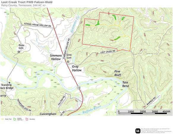 Mills I-40 Exit 143, near Lobelville, TN. This exceptional property is less than one mile from Buffalo River Resort and approximately 1.5 miles from the beautiful Buffalo River, one of Middle Tennessee's most popular destinations for canoeing, kayaking, fishing, and outdoor recreation. The land is also convenient to the Duck River and Tennessee