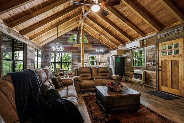 Escape to your own private paradise with this charming 1-bedroom, 1-bath cabin, featuring a spacious loft, nestled on 58.17 acres of gently rolling property. This unique retreat offers the perfect blend of rustic charm and modern comforts, making it ideal for weekend getaways, full-time living, or an income stream. Cozy cedar and antique barn wood paneling throughout, adding warmth and character. Direct waterfront access to the stocked lake teeming with bass, catfish, and bluegill. Equipped with a mini-split system for heating and cooling, a propane wall heater, and a charming wood-burning pot belly stove for those chilly nights. Underground power for a clean, unobtrusive landscape. Includes a convenient storage area for all your outdoor gear. Multiple building sites. Located just minutes from Bridgestone Centennial Wilderness Area and Scott's Gulf State Park which includes: Virgin Falls, Lost Creek Falls, Welch's Point - a haven for outdoor enthusiasts! Serenity in nature!