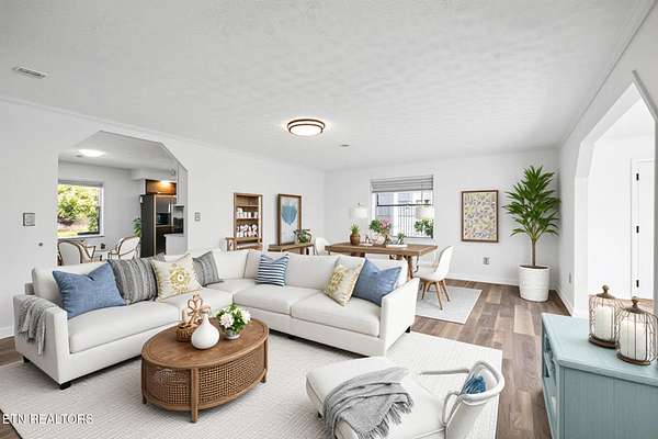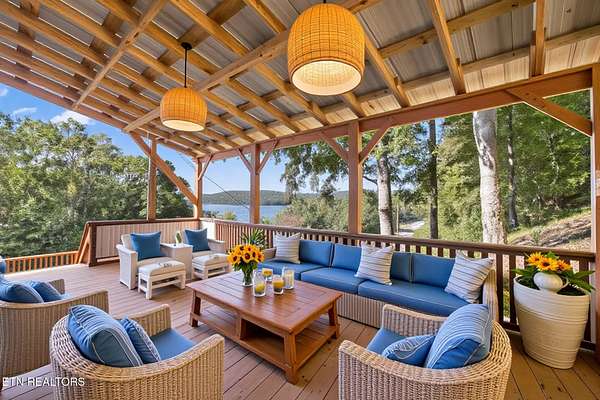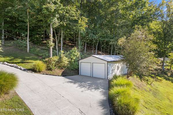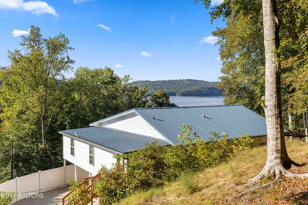 Set on 1.5 acres (five lots), this property is ideal for all your Norris Lake & E TN mountain adventures with exceptional privacy and stunning, year-round views of Lake. The home is situated in a peaceful, secluded neighborhood (Tanglewood) with light restrictions and no HOA. This allows for the potential of full, part-time, recreational living and or short term rental! Experience carefree freshwater living without the burden of dock permits or maintenance. Within the development is a convenient main channel spot for launching your boat, jet ski, swimming, or dog walking is just three-quarters of a mile away when exiting left from the driveway onto Tanglewood. The spacious, move-in ready, 40ft x 24ft garage provides ample storage for your ATVs, boat and jet skis. Parking is convenient inside (2-spots) and outside (2-spots) the garage, plus additional parking for 2-spots on concrete by the front door. There is room for 8 more vehicles by the street, perfect for summer gatherings. Inside: the owners have done a tremendous amount of upgrades including but not limited to: all new flooring thruout home, interior home paint refresh, updated bathrooms and so much more! (Fact Sheet avail). Each of the eleven rooms have great potential, including a large kitchen, family room, sun room, and dining room. 2 bedrooms, four of the eleven rooms feature closets, providing flexibility to choose bedrooms while still enjoying ample bonus spaces for an office, hobby room, or guest quarters. A large basement/utility room beneath the house offers additional storage. Relax on the expansive covered deck (24ft x 16ft), or soak up the sun on the open deck (400sf). An adjoining 320sf deck room with numerous windows offers versatile uses, whether for a gym, recreation area, or even as a charming sun room for lazy summer days by the lake. If you're working remotely, fast fiber-optic internet service is available. Easy access from development launch by lake or just down the road and ride it to 33 Boathouse/Beach Island Marina (3 miles away by water) or Hickory Star (12 miles away) for dining, drinks, and live music. For an ATV adventure, check out Chuck Swan, one the State's largest, Wildlife Management Reserves, about 9 miles away. Centrally located to Knoxville, Morristown, Kentucky and Virgina. Gatlinburg/Dollywood is an easy day trip. Create lasting memories in this remarkable setting! Come see it before it's gone. Septic Permit on File. Buyer/Buyers agent to verify all info. Drone photography has been used as well as Virtual Staging.
