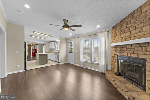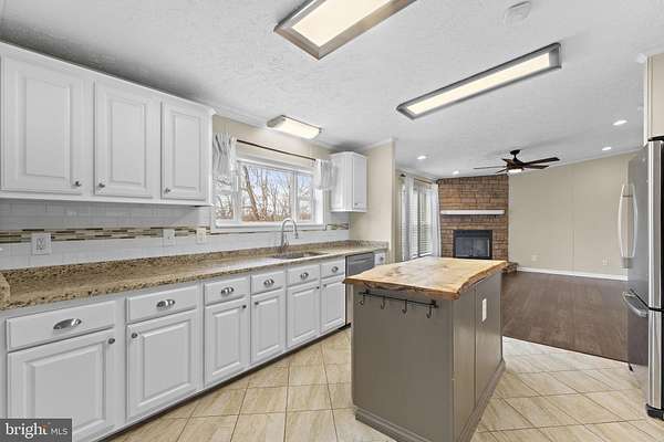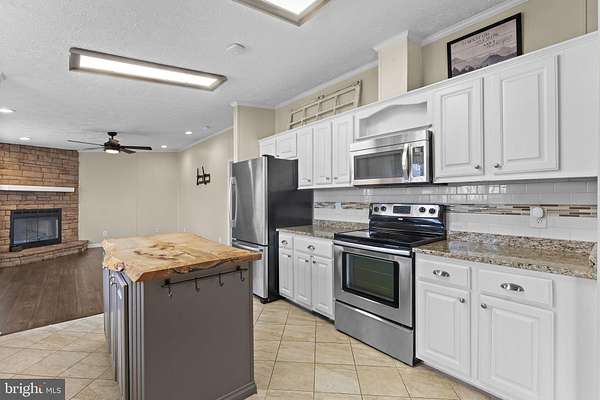 - Attic, Carpet, Ceiling Fan(s), Dining Area, Entry Level Bedroom, Family Room Off Kitchen, Gourmet Kitchen, Island Kitchen, Open Floor Plan, Recessed Lighting, Tub Shower Bathroom, Upgraded Countertops, Walk-In Closet(s), Walk-In Shower Bathroom, Water Treat System, Window Treatments, Wood Stove